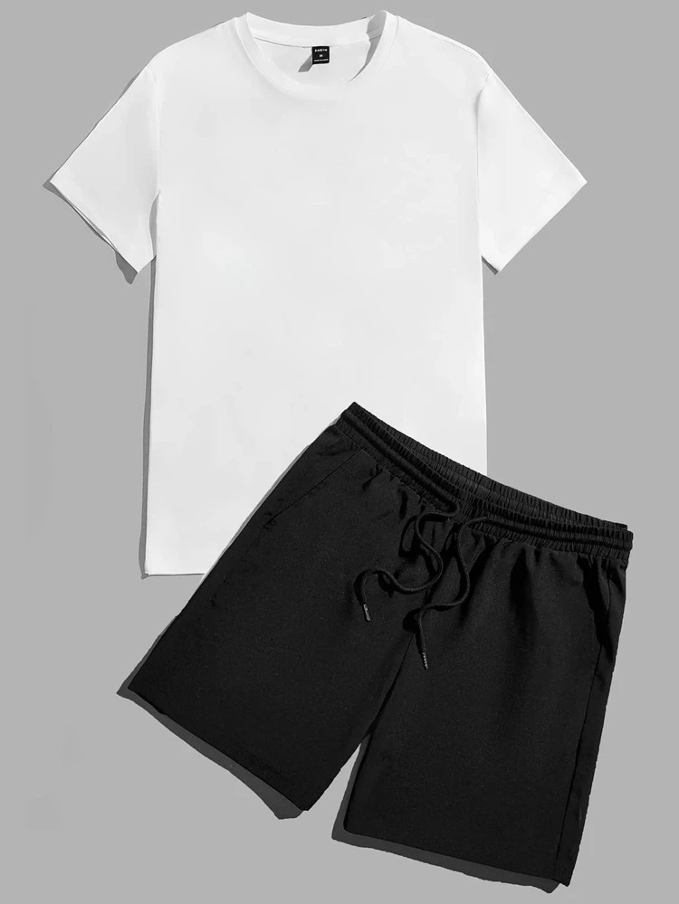 The SHEIN Men Slogan & Cartoon Graphic Tee & Drawstring Waist Shorts is the perfect combination of comfort and style. The set includes a trendy graphic tee with a fun slogan or cartoon design, and a pair of comfortable drawstring waist shorts. The tee is made from soft and breathable fabric, ensuring all-day comfort, while the shorts are designed with a relaxed fit and adjustable waistband for a customized fit. Whether you’re lounging at home or running errands, this set is a must-have for any fashion-forward man looking to elevate his casual wardrobe.