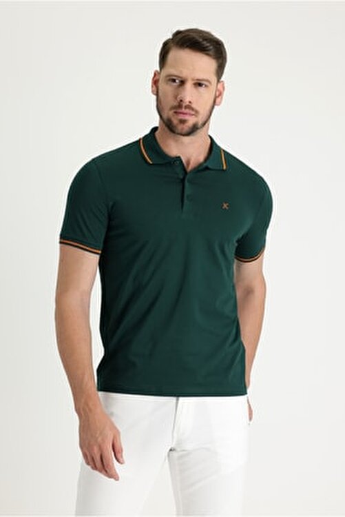 | nameOriginal | Men's Green Polo Neck Slim Fit Embroidered Jersey T-Shirt |