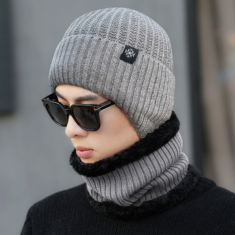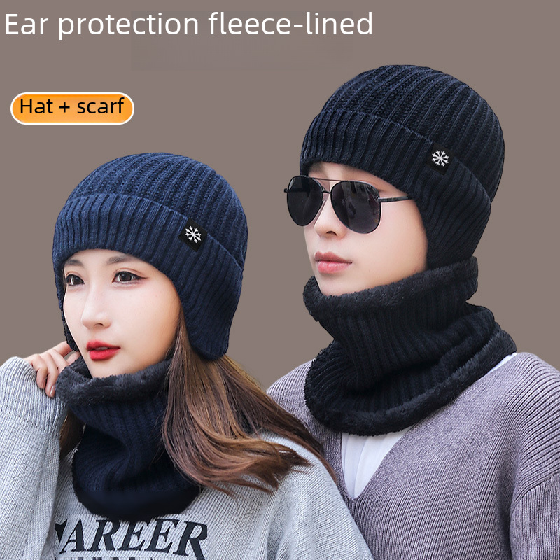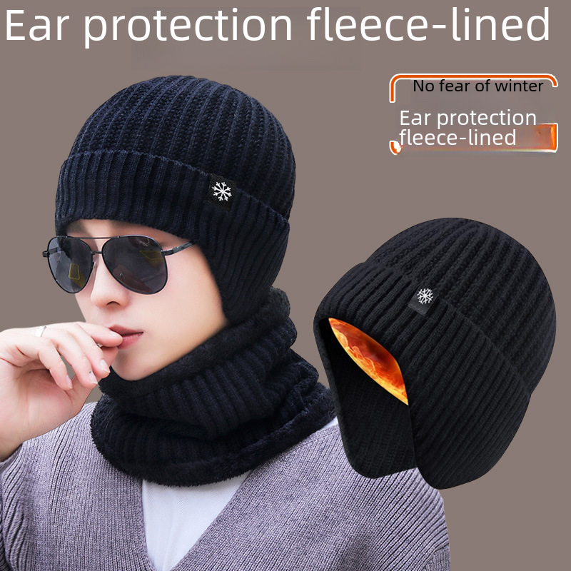 Men's hat 2023 new autumn and winter big head circumference fleece-lined thickened knitted hat scarf one-piece Men's ear protection hat