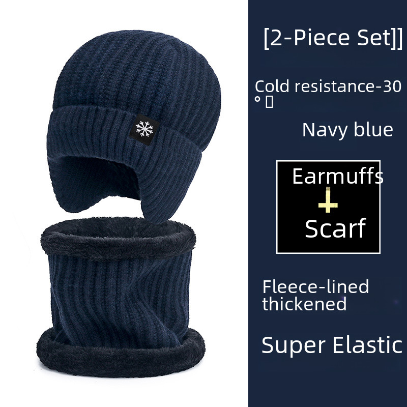 Men’s hat 2023 new autumn and winter big head circumference fleece-lined thickened knitted hat scarf one-piece Men’s ear protection hat