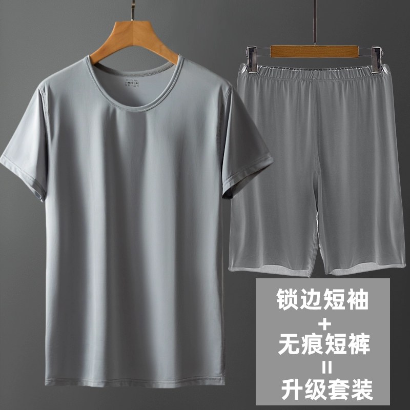 | nameOriginal | Men's ice silk seamless pajamas set, cool and breathable T-shirt shorts 2-piece set, home wear, fitness and sports quick-drying clothes |