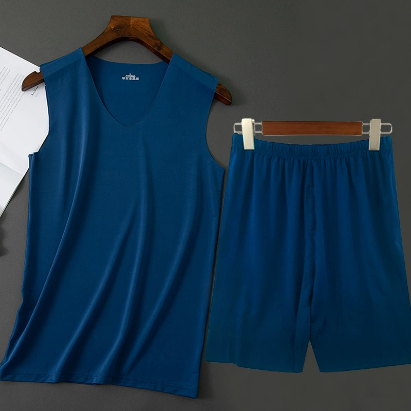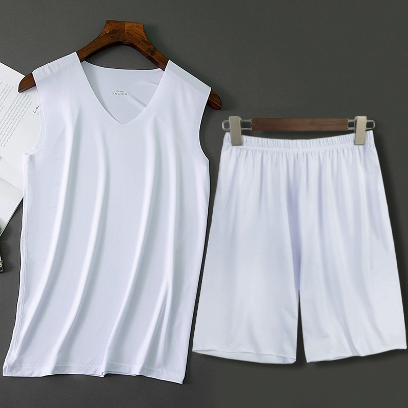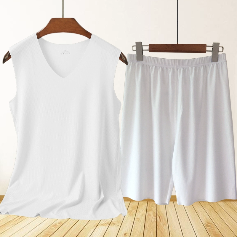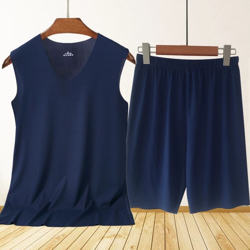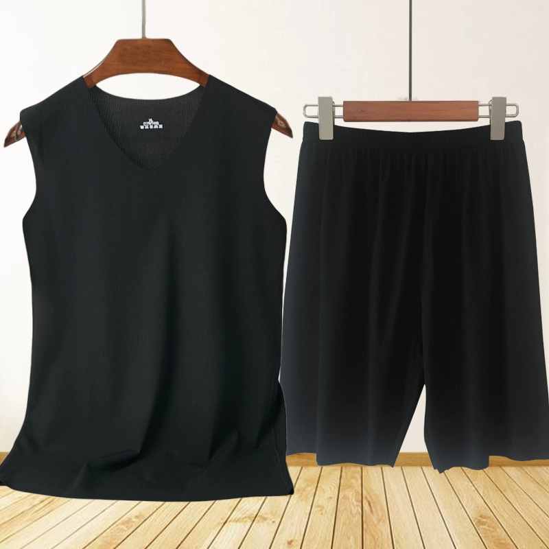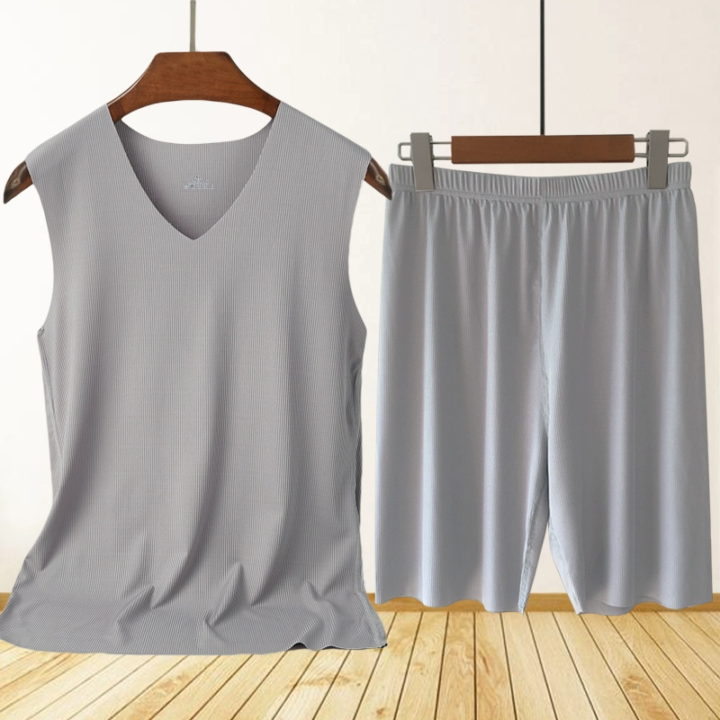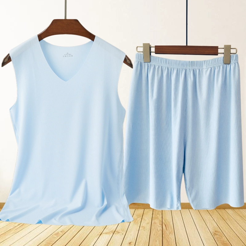 | nameOriginal | Men's Ice Silk Seamless Pajamas Set Striped Vest 5-Point Shorts Two-piece Summer Casual Home Air Conditioning Clothing |