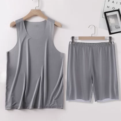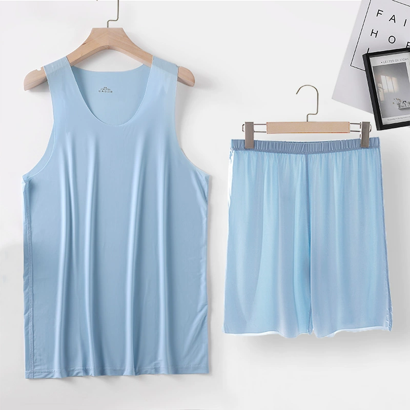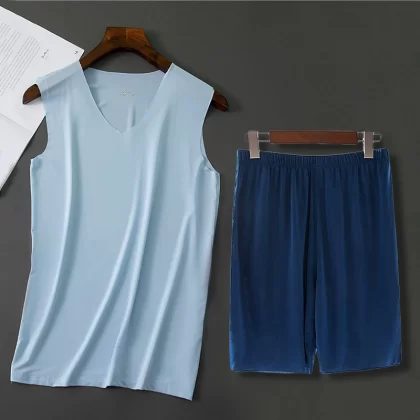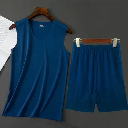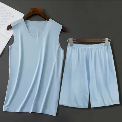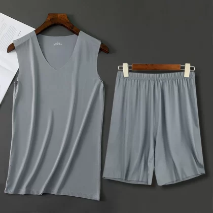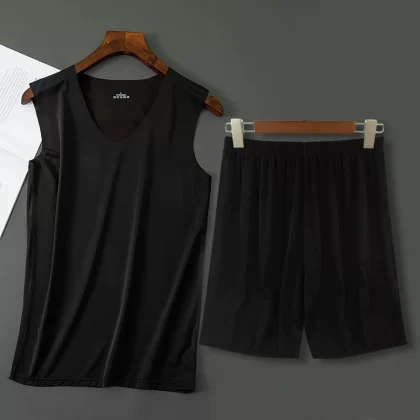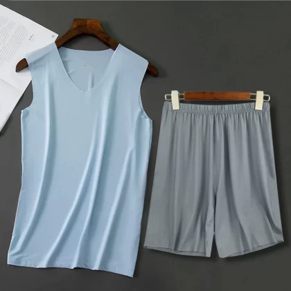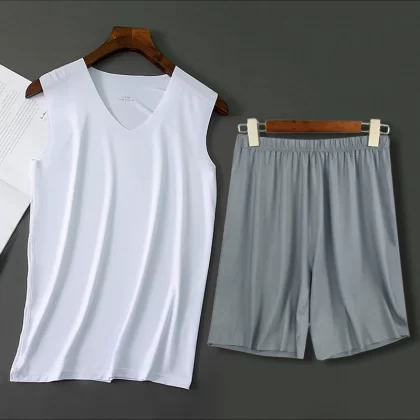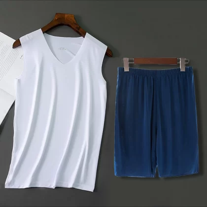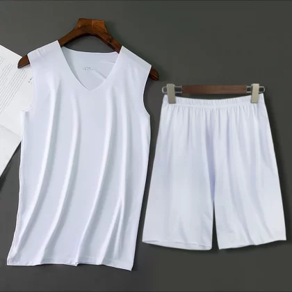 | nameOriginal | Men's Ice Silk Seamless Suit V-neck Vest Shorts Casual Home Pajamas Lightweight Breathable Sports Quick-Drying Top |