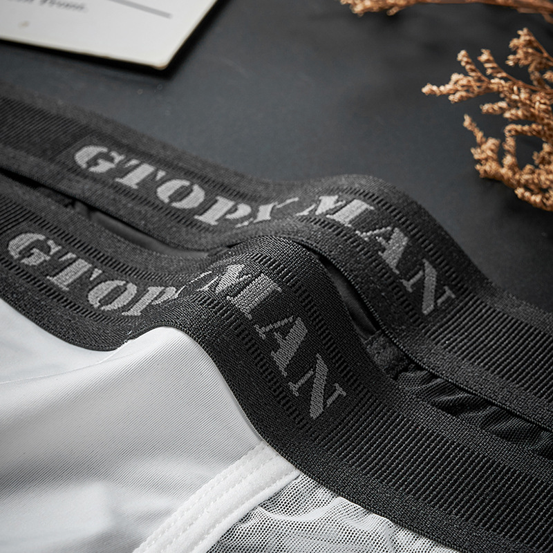 Men's Ice Silk translucent thin mesh single layer U convex bag low waist breathable sports sexy briefs underwear
