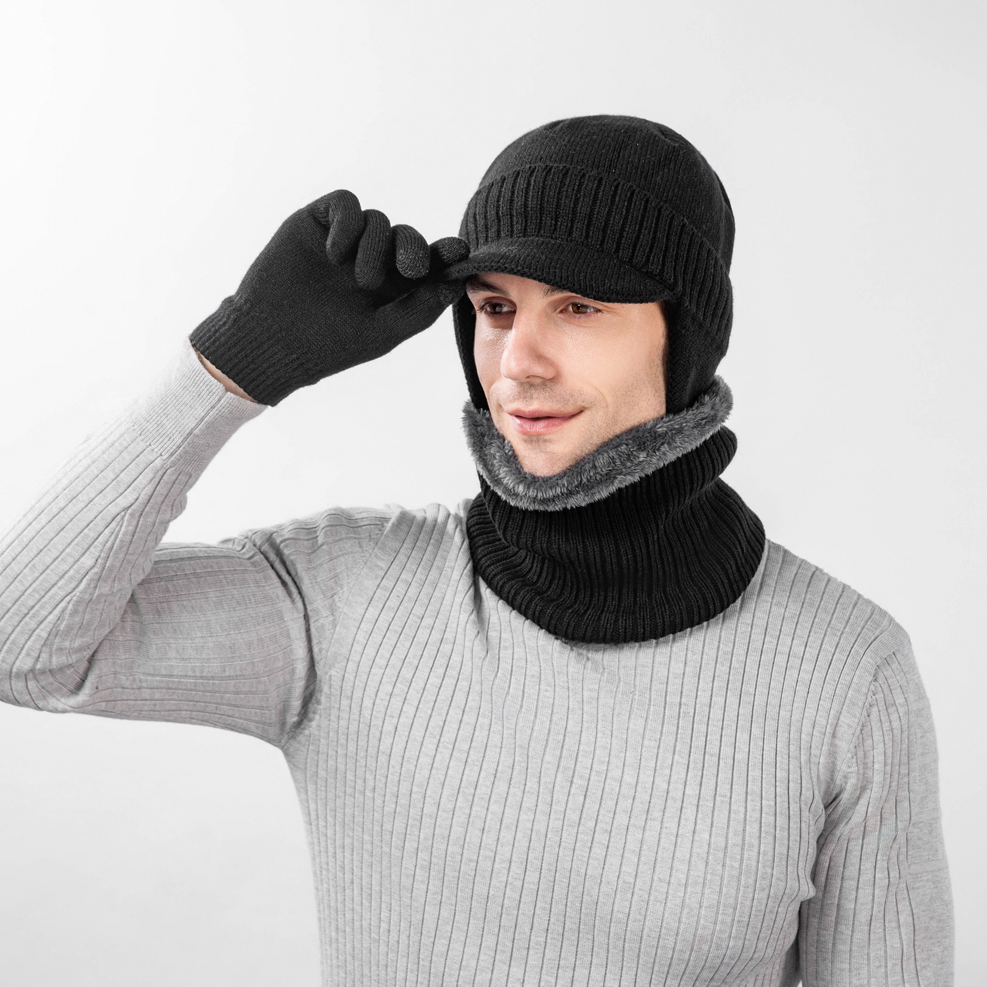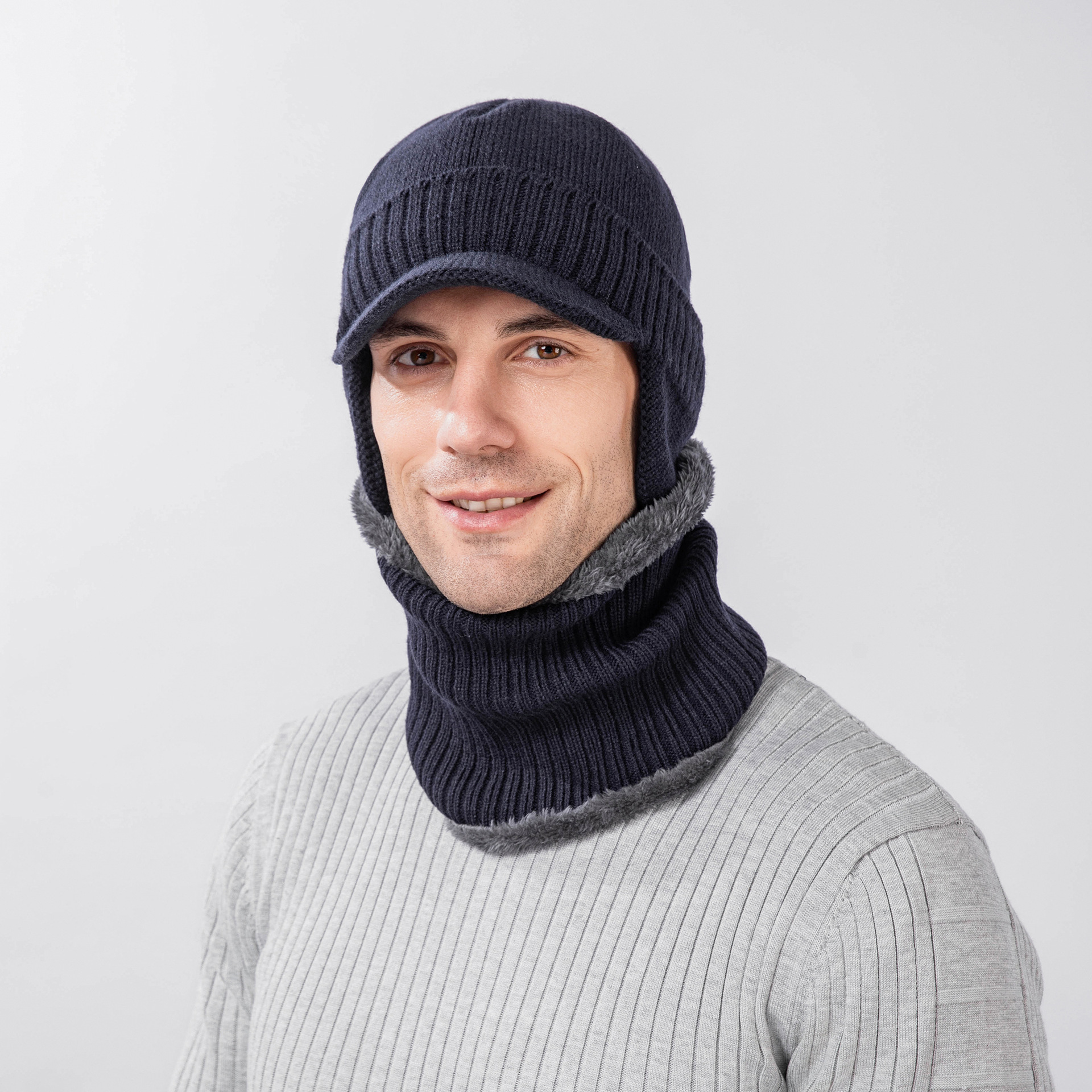 | nameOriginal | Men's Knitted Bib Hat Gloves suit Winter Fashion Wool Hat with Hat Brim fleece-lined Windproof Riding Gloves |
