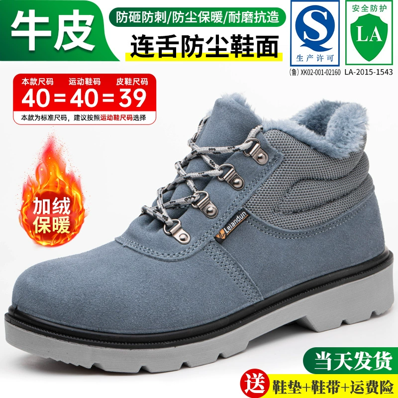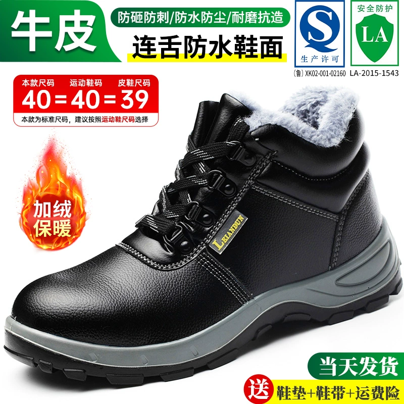 Men's labor protection shoes, lightweight, anti-odor, anti-smash, anti-puncture, steel-toe high-top work cotton shoes plus velvet, welding construction site summer