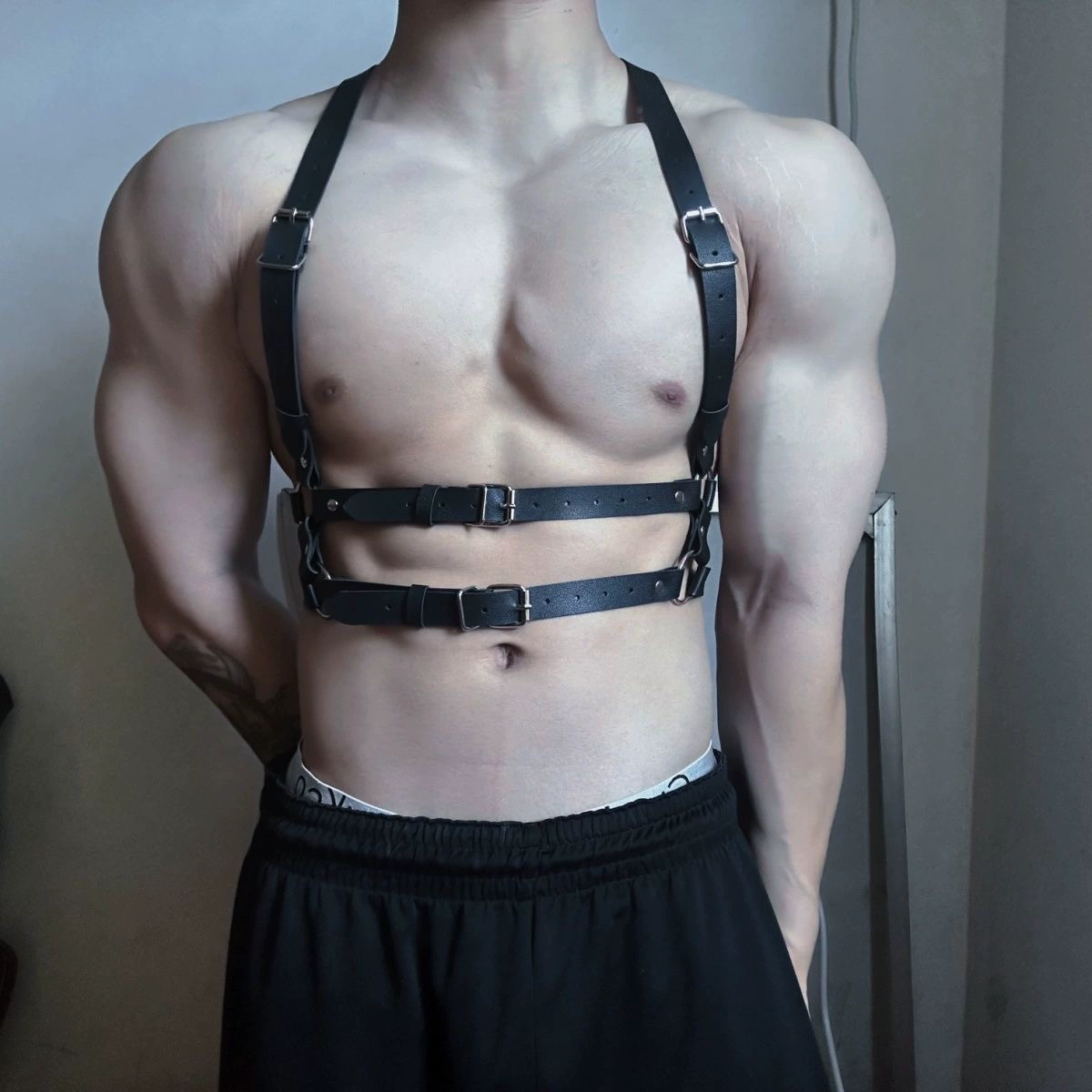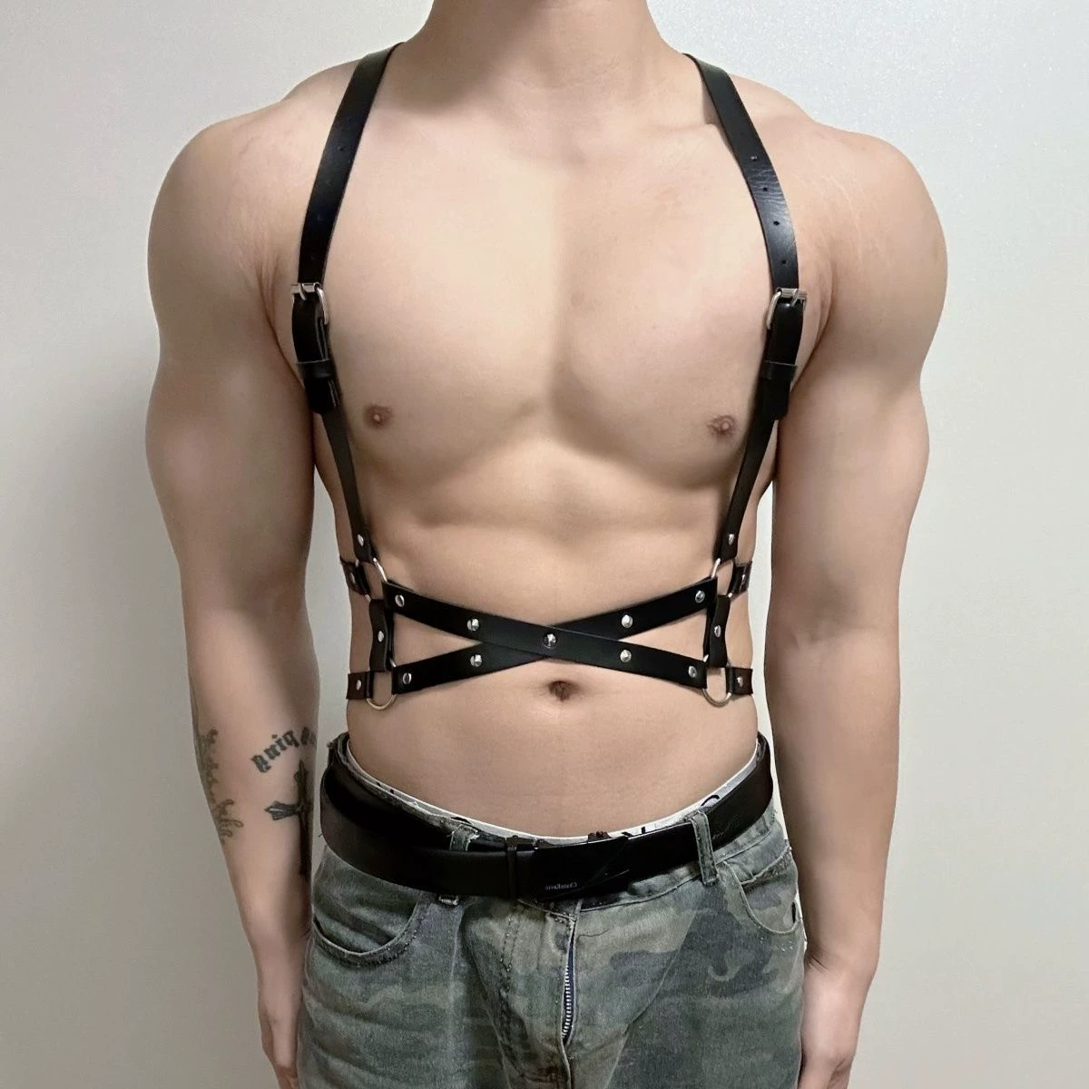 Men's leather strappy vest chest strap shoulder strap stage style 1S adjustable dancing sexy muscle restraint bra for men