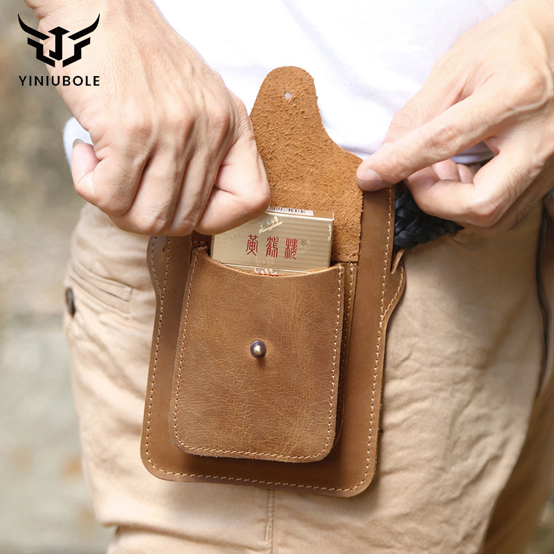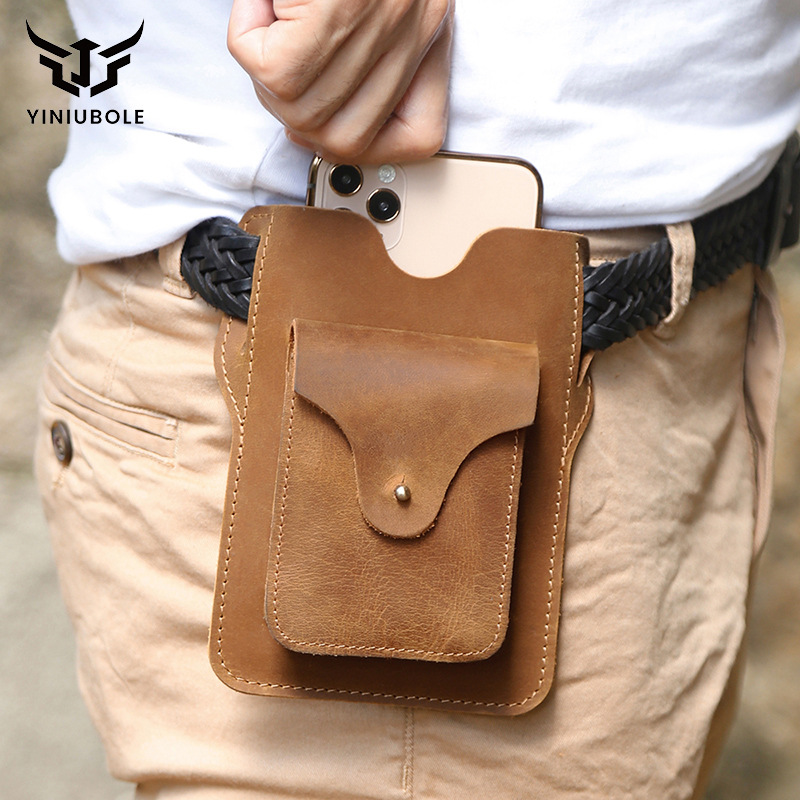 Men’s leather waist bag small retro men’s waist bag outdoor sports portable men’s bag simple waist bag