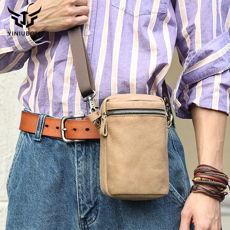 Men’s messenger bag genuine leather shoulder bag vertical men’s personalized waist bag high-grade light luxury crossbody shoulder bag wholesale