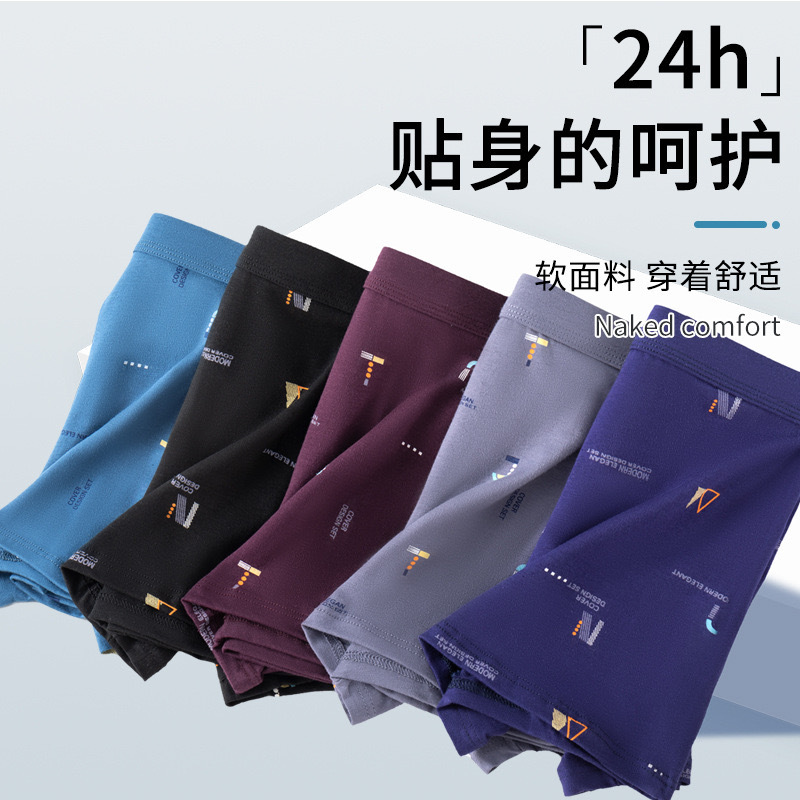 Men's Mid-Waist Cotton Crotch Large Size Loose Underwear Breathable Sports Four-Corner Short Pants New Pure Cotton Boxers