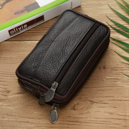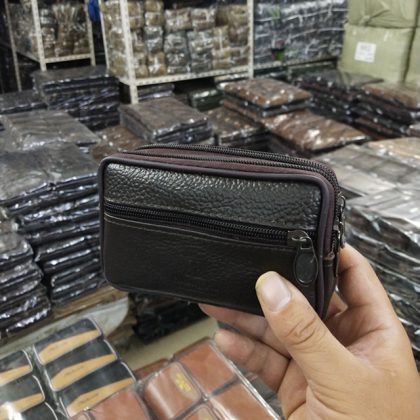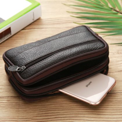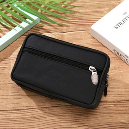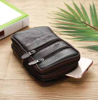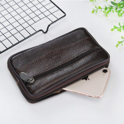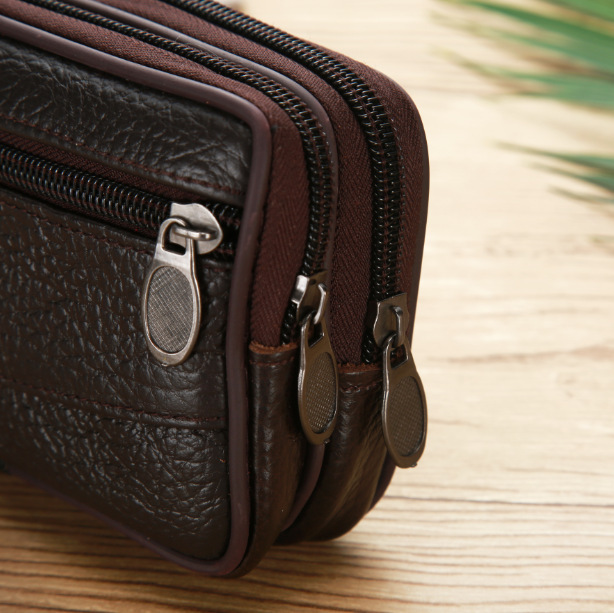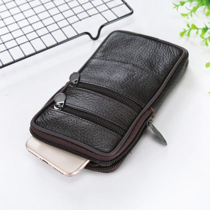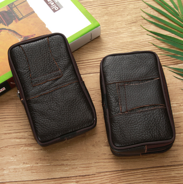 Men’s new waterproof mobile phone waist bag wearing leather belt cowhide multi-functional elderly change key bag in stock