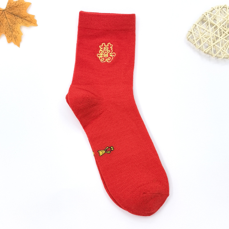 | nameOriginal | Men's New Year Spring Festival Big Red Socks Auspicious Festive Wedding Socks Solid Color Embroidered Cotton Socks Boxed |