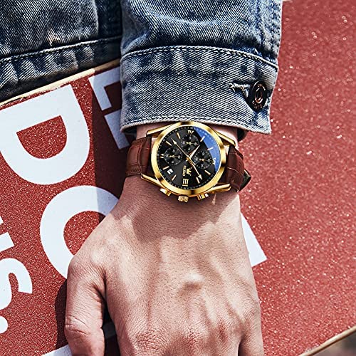 | nameOriginal | OLEVS Brown Black Leather Strap Watches for Mens Sport Chronograph Analog Quartz Moon Phase Big Dial Waterproof Luminous Wrist Watches for Male |