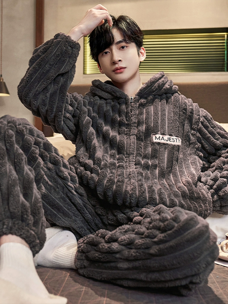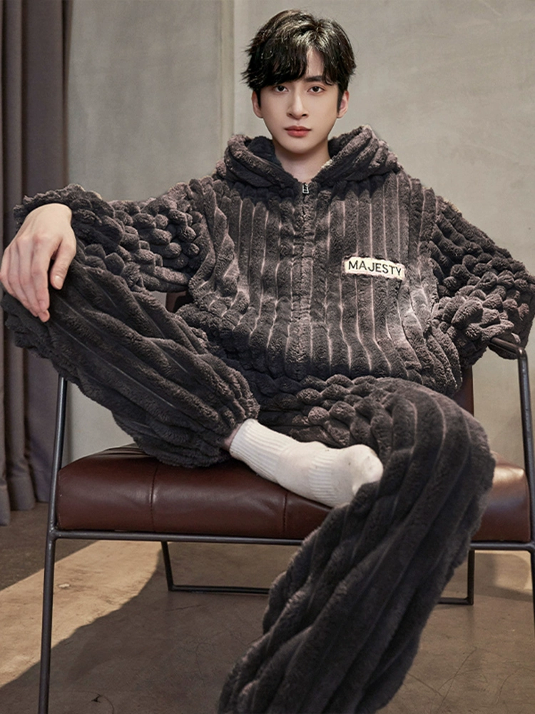 | nameOriginal | Men's pajamas autumn and winter coral velvet thickened plus velvet warm zipper hooded winter men's home wear that can be worn outside |