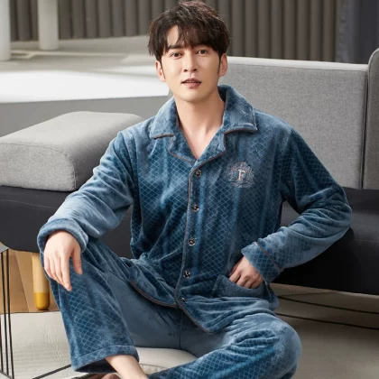 | nameOriginal | Men's pajamas autumn and winter thickened plus velvet coral velvet spring and autumn long-sleeved flannel home clothes winter suit |