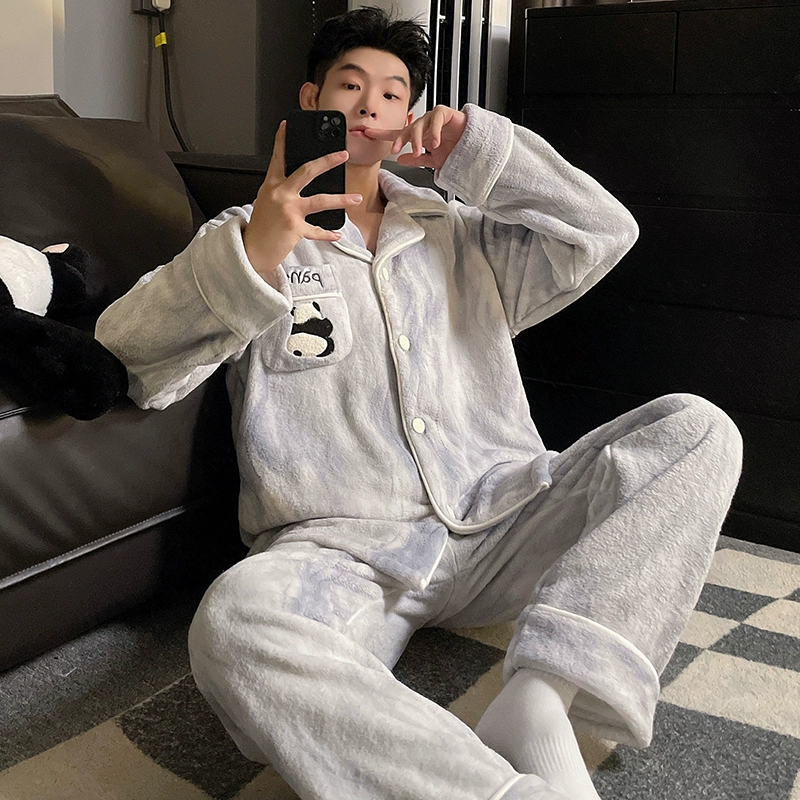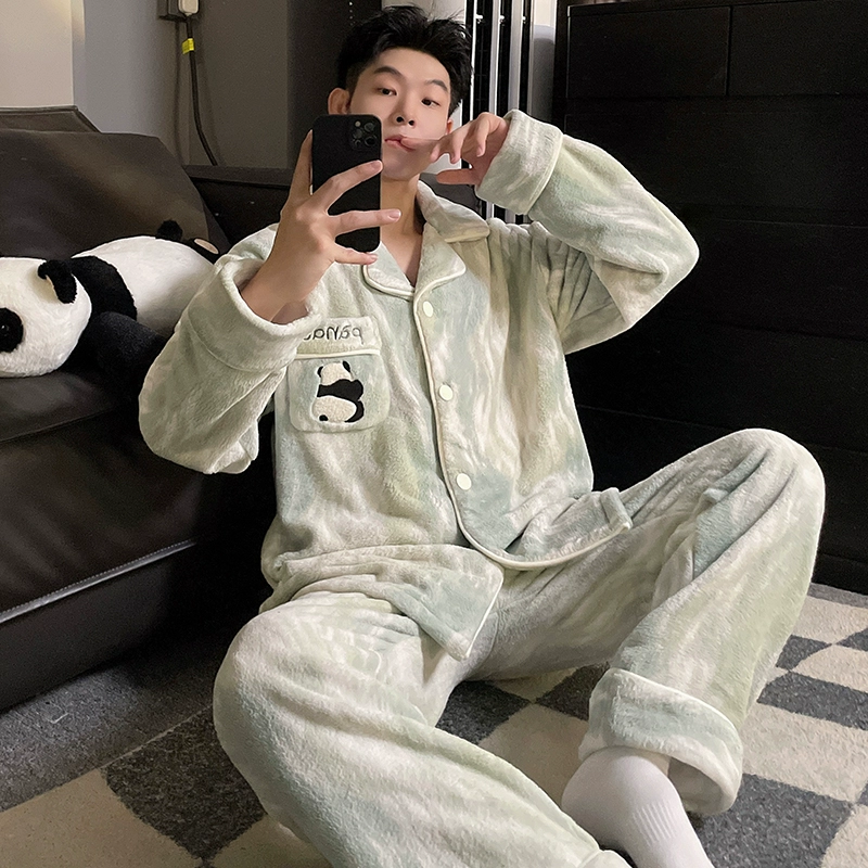 | nameOriginal | Men's pajamas coral velvet autumn and winter thickened plus velvet 2024 new cartoon boys and teenagers home wear set |