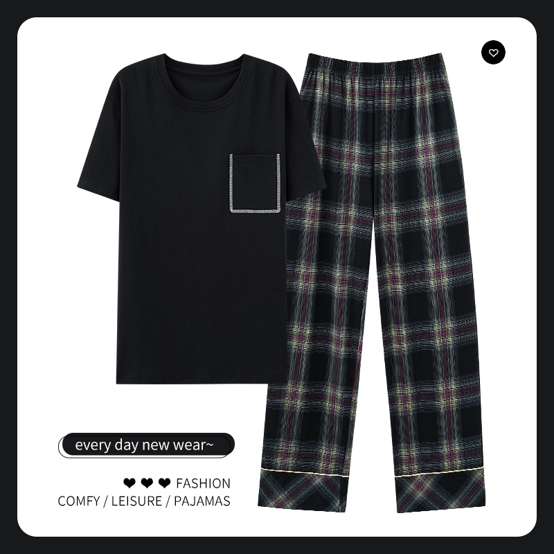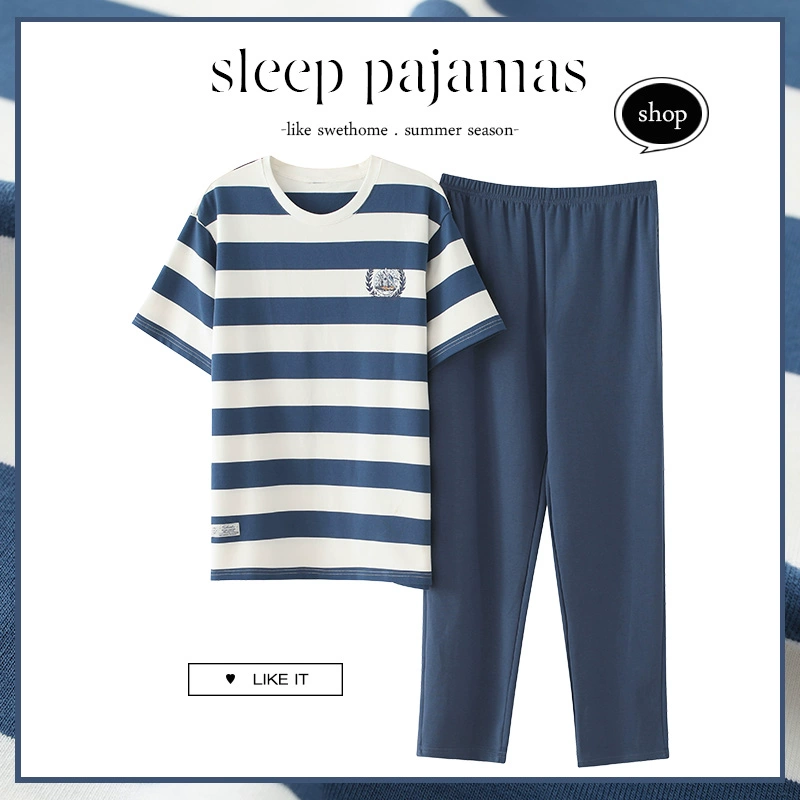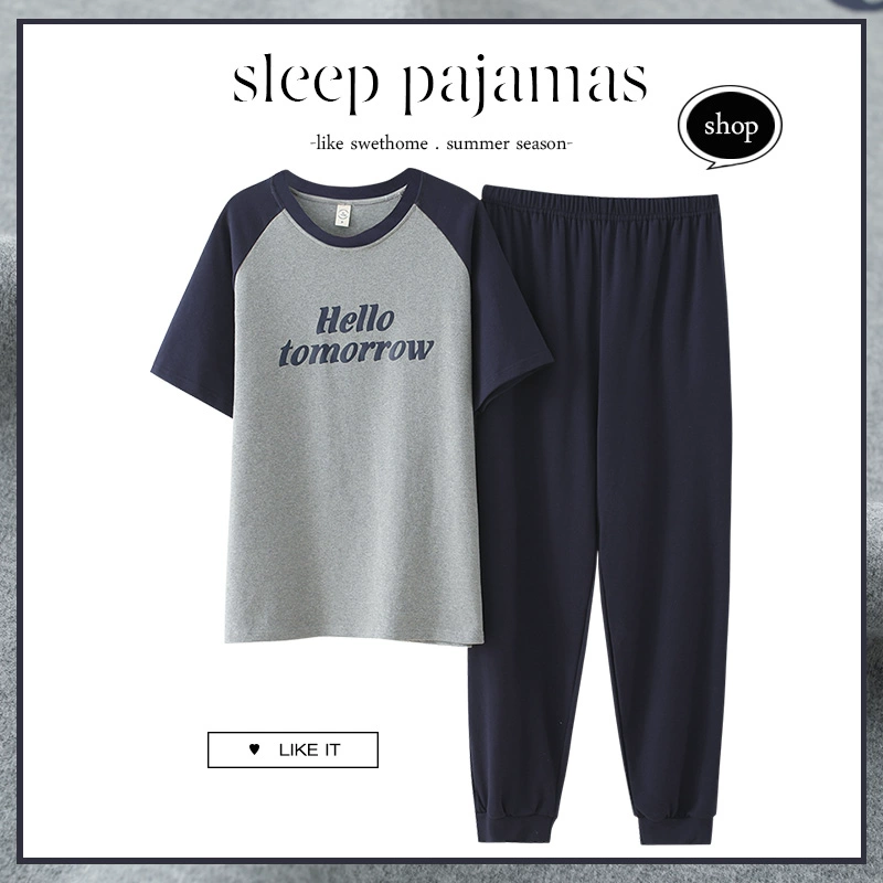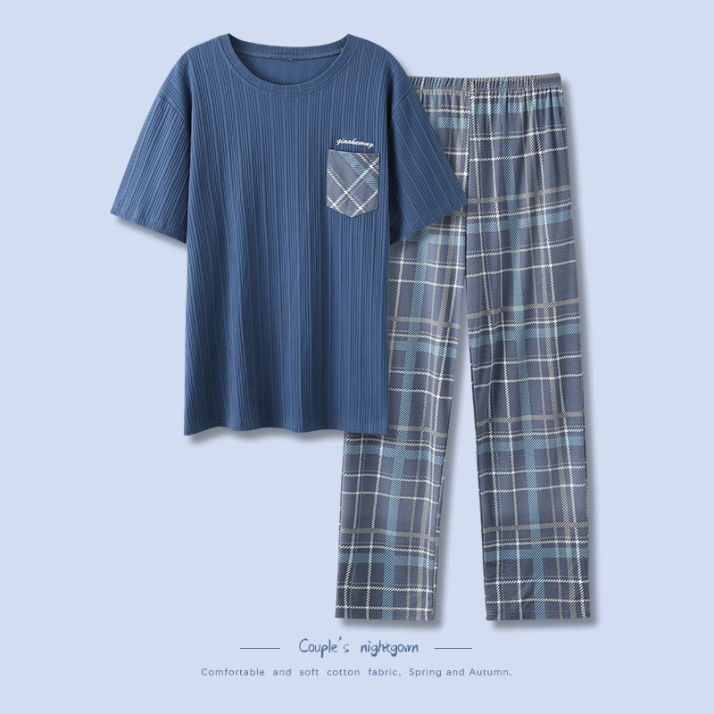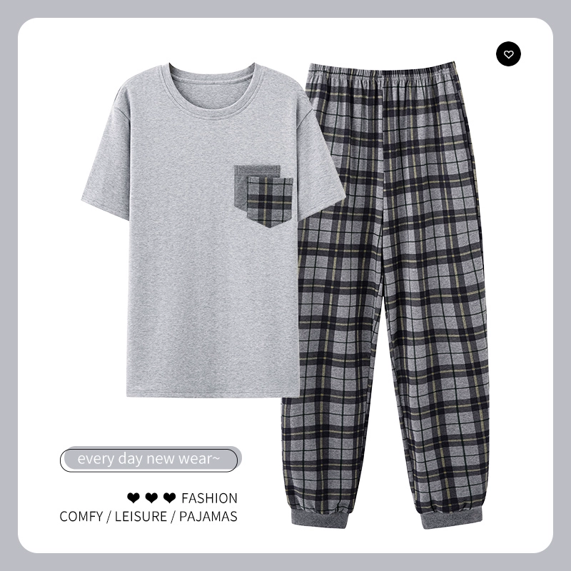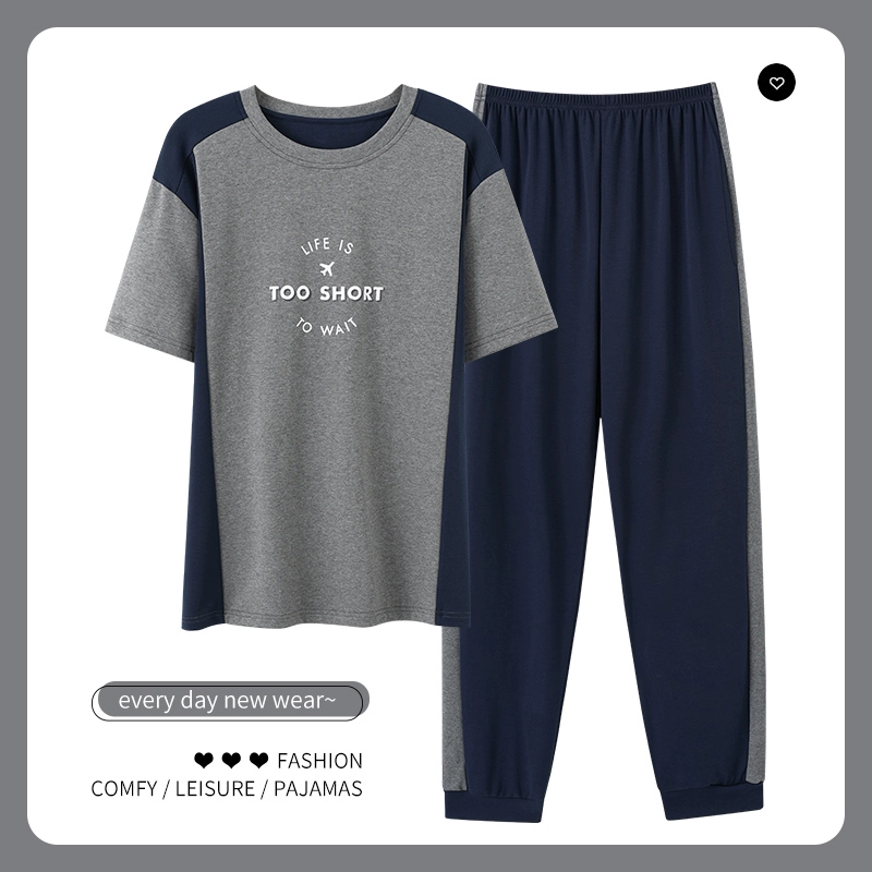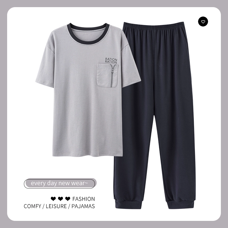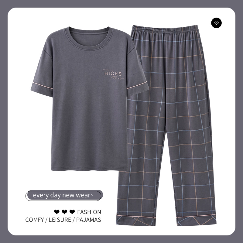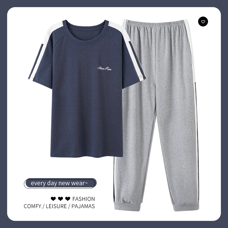 | nameOriginal | Men's pajamas spring and summer thin pure cotton short-sleeved trousers plus size teen boys can wear home clothes set |