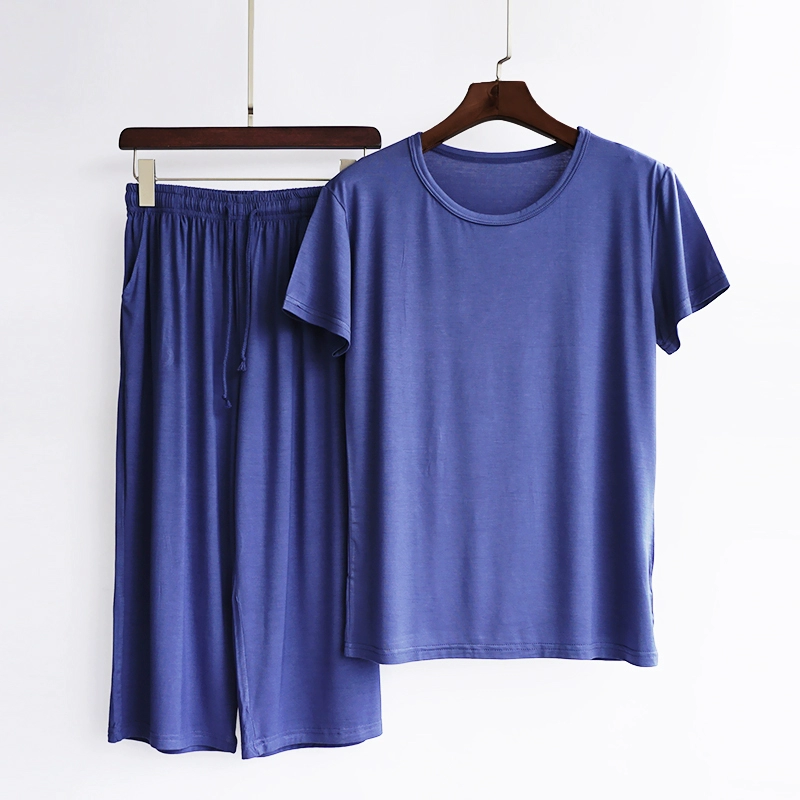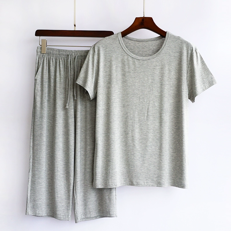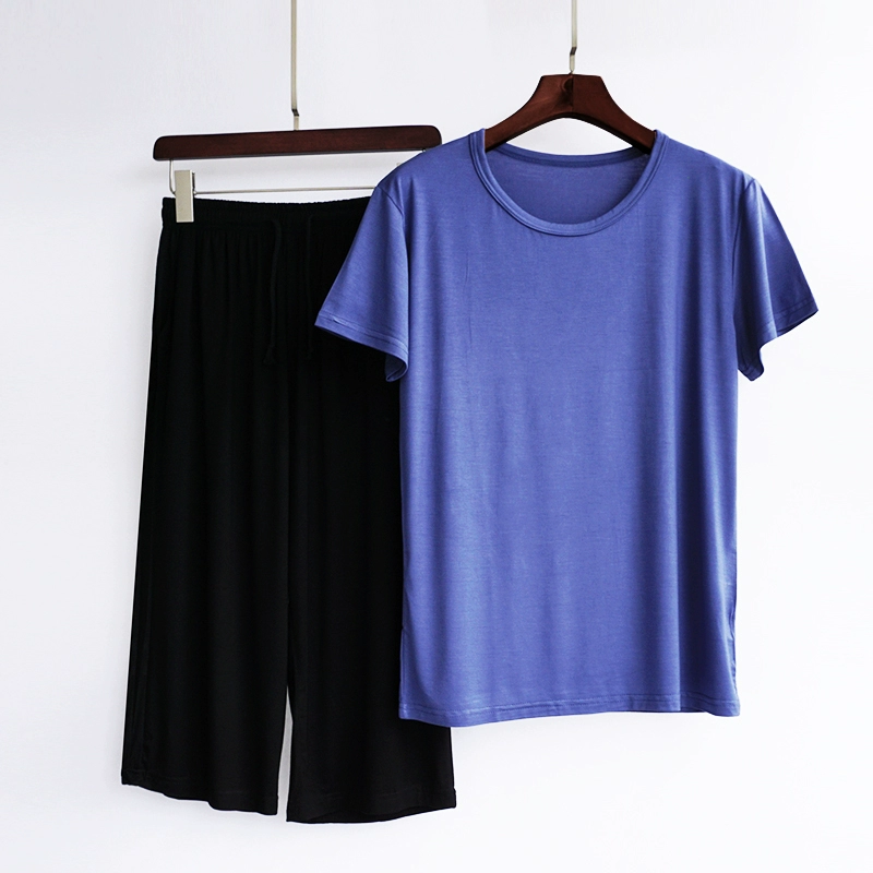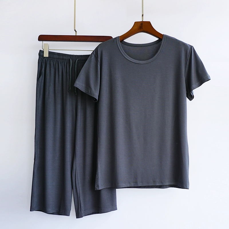 | nameOriginal | Men's pajamas summer short-sleeved cropped pants Modal thin style can be worn outside loose ice silk cool home clothes set |