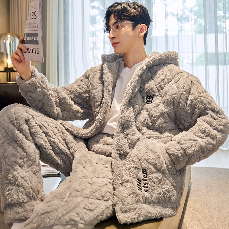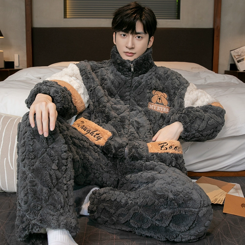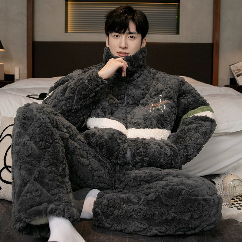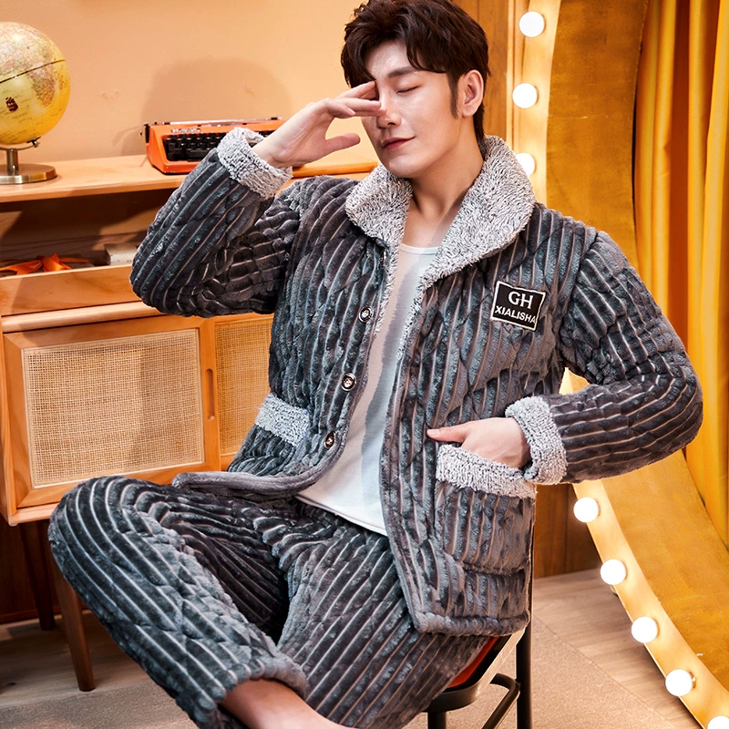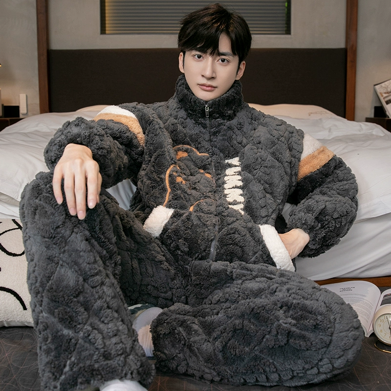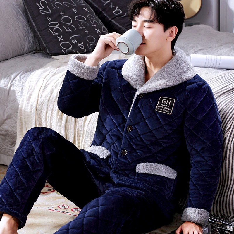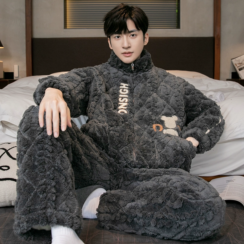 | nameOriginal | Men's pajamas three-layer quilted autumn and winter coral velvet youth plus velvet thickening can be worn outside winter home clothes day |