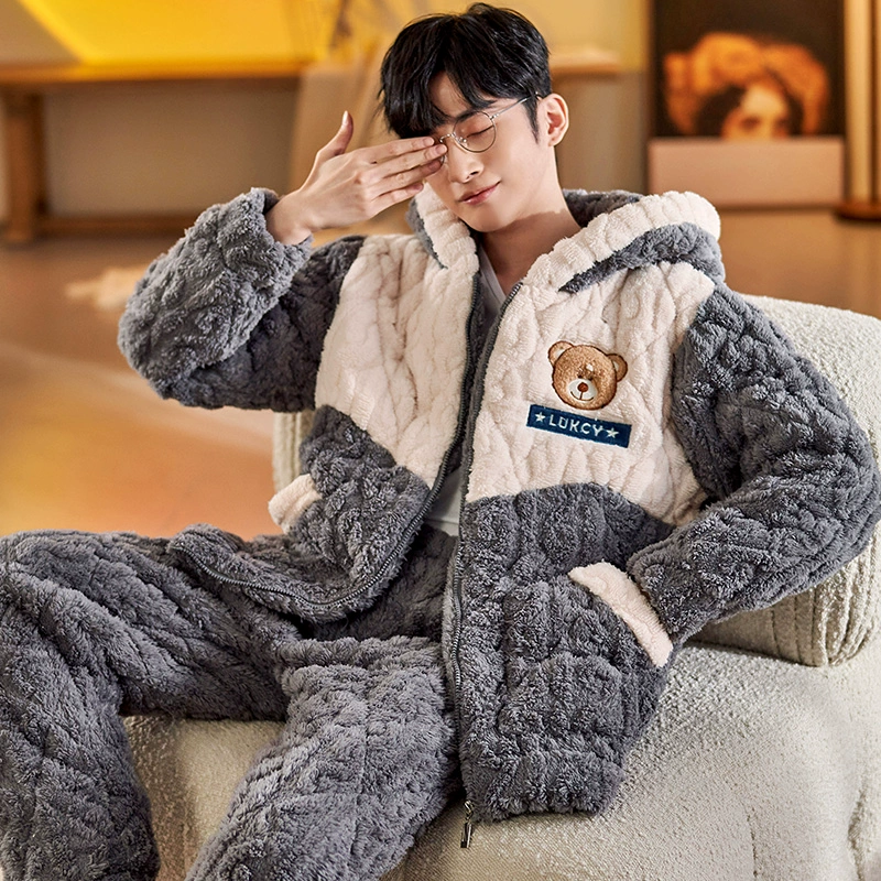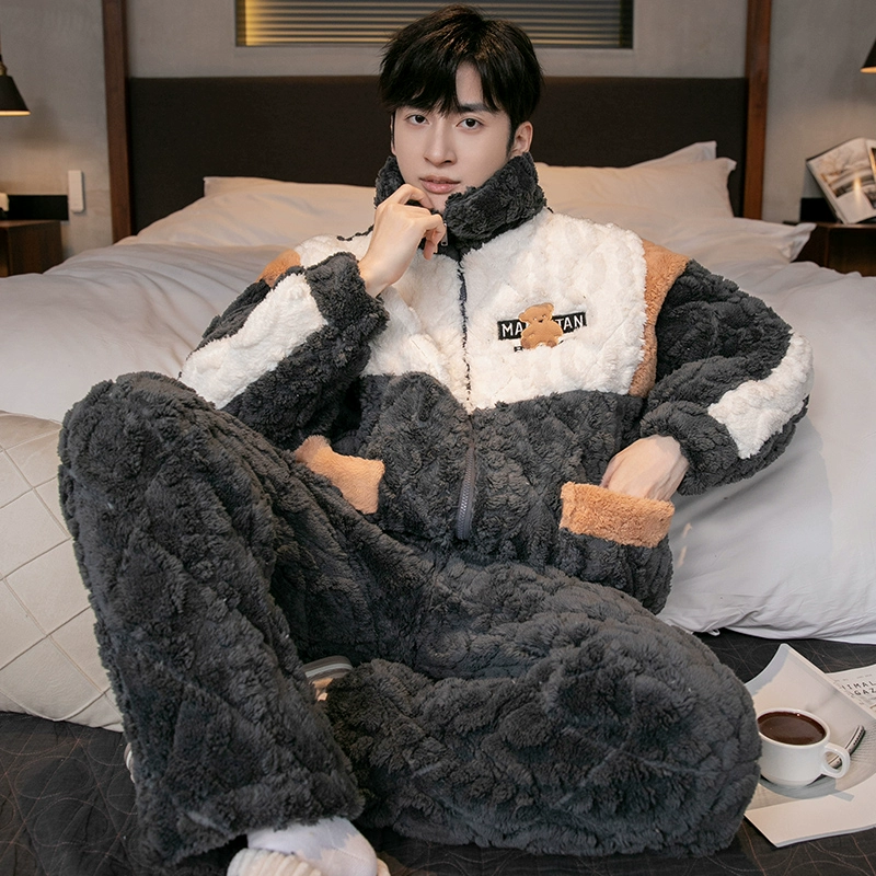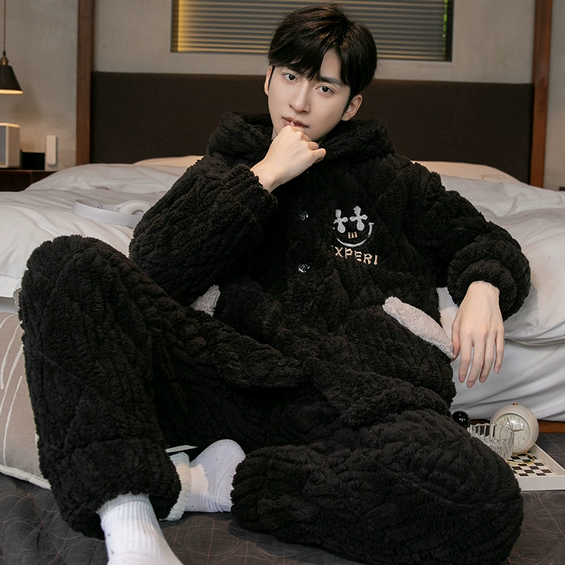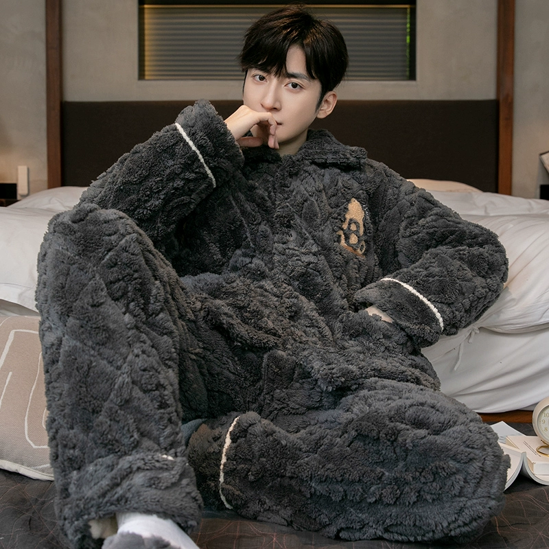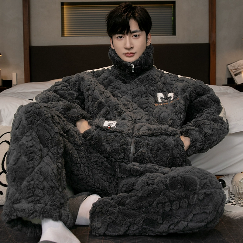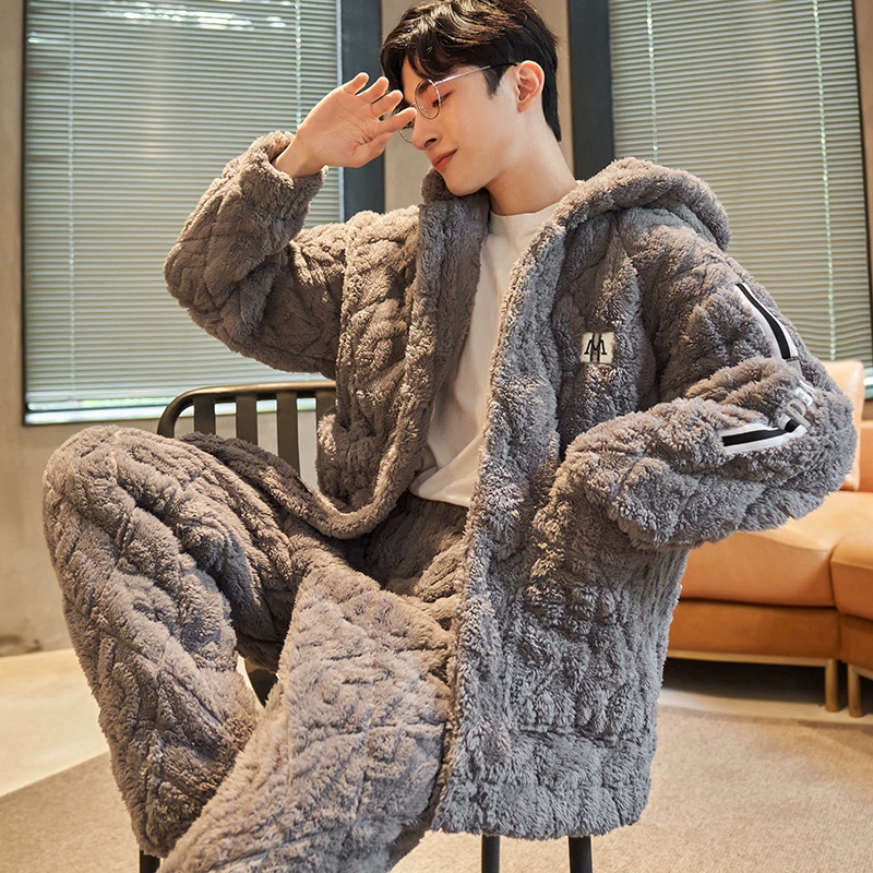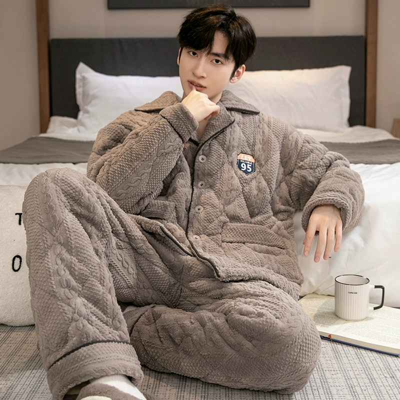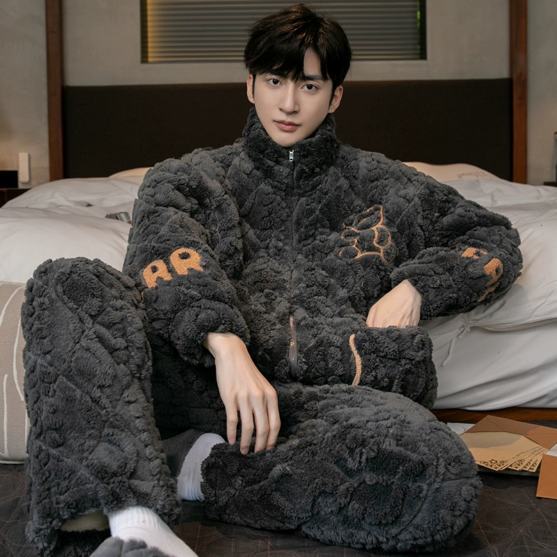 | nameOriginal | Men's pajamas three-layer quilted autumn and winter coral velvet youth plus velvet thickening can be worn outside winter home clothes day |