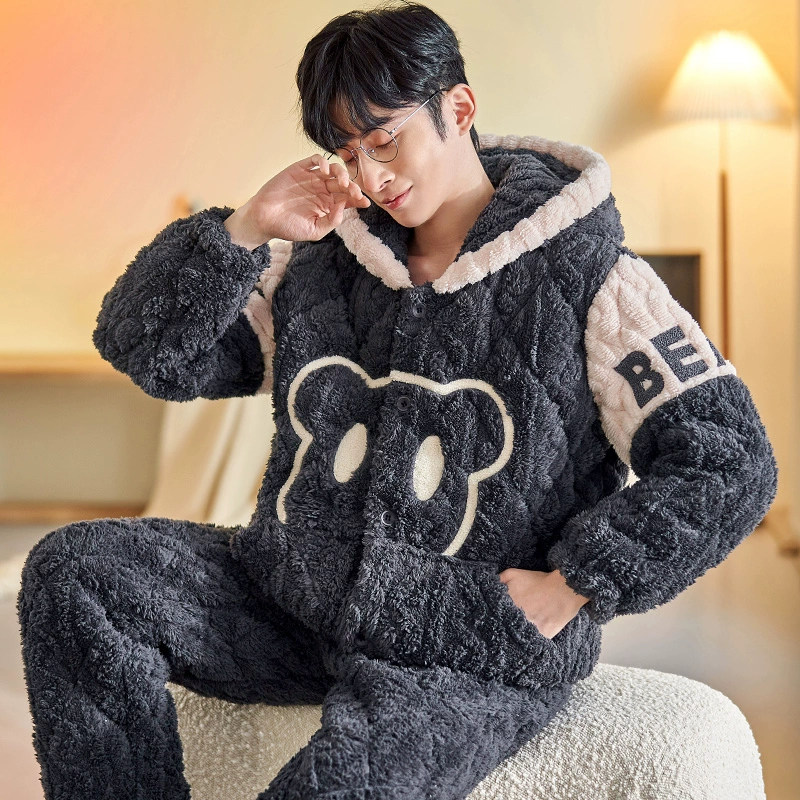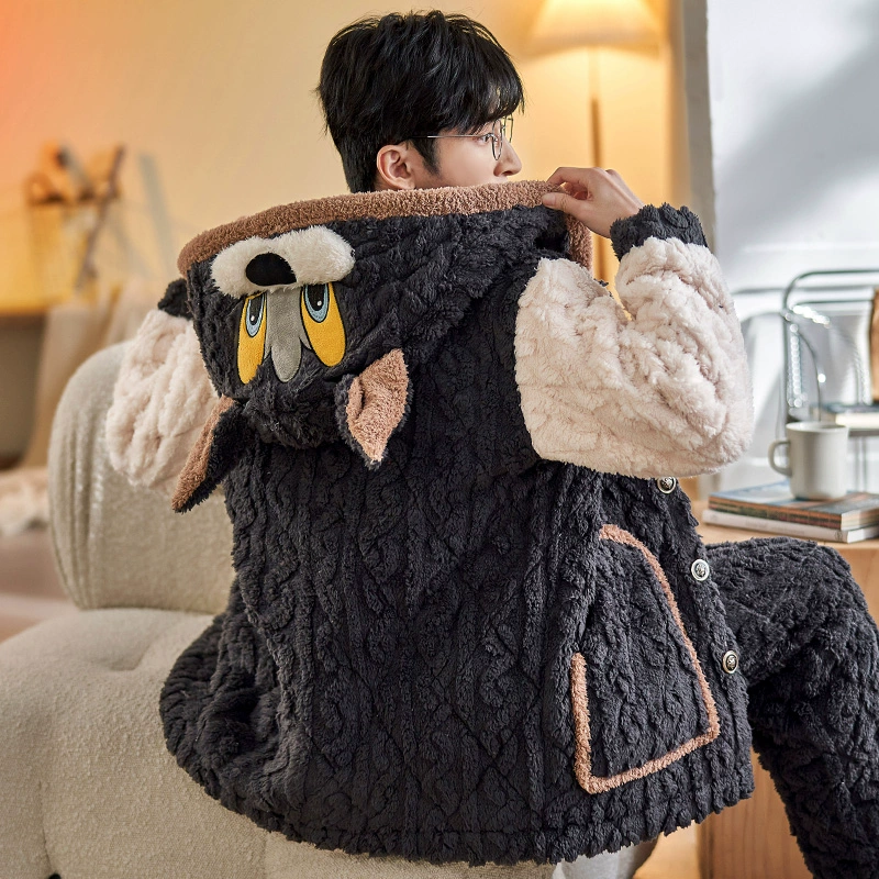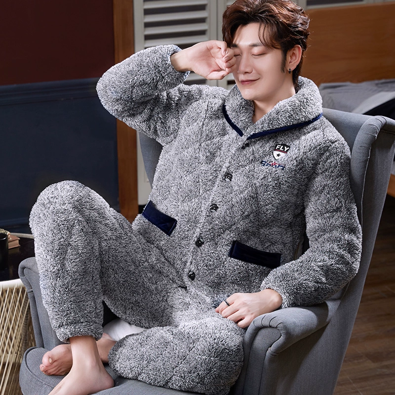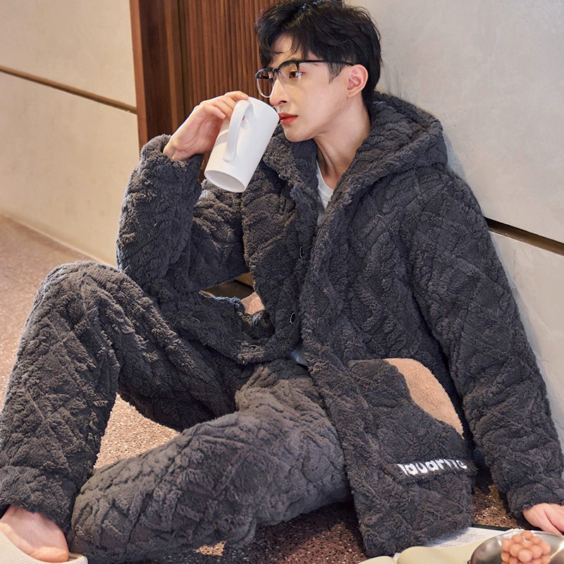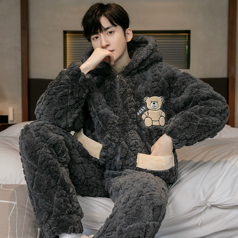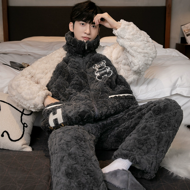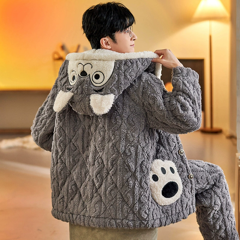 | nameOriginal | Men's pajamas three-layer quilted autumn and winter coral velvet youth plus velvet thickening can be worn outside winter home clothes day |