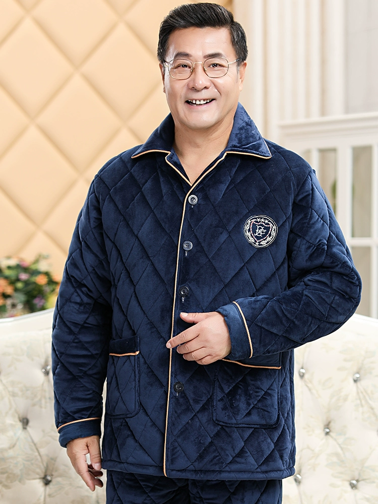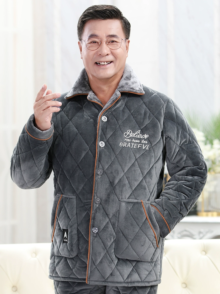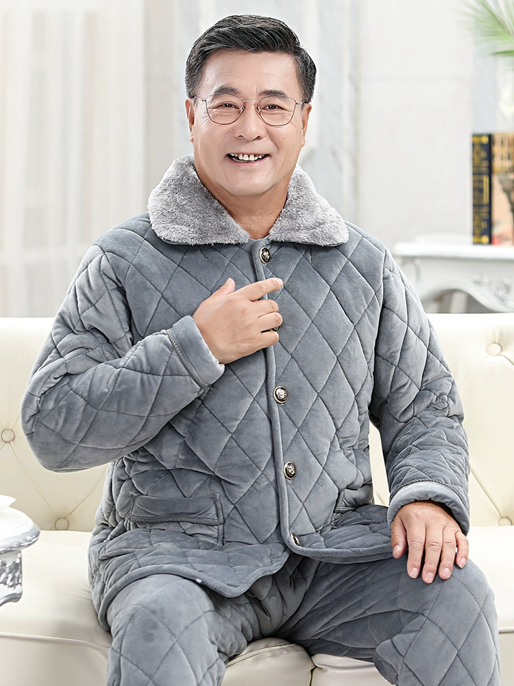 | nameOriginal | Men's pajamas winter thickened plus velvet coral velvet three-layer quilted ultra-thick winter middle-aged and elderly father's home clothes |