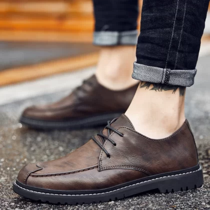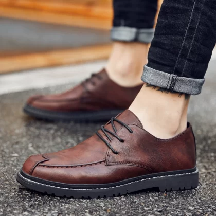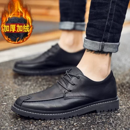 Polarized small leather shoes men’s Korean version of the trend increase business casual leather shoes men’s wild British retro Martin tide shoes