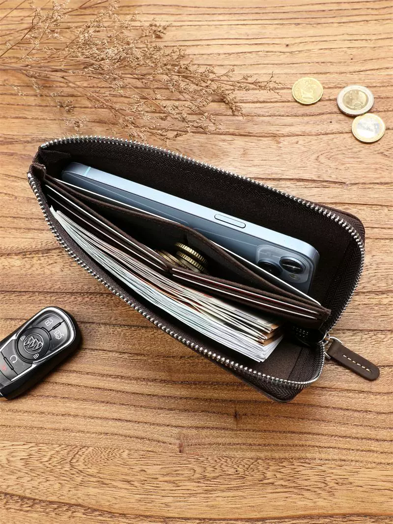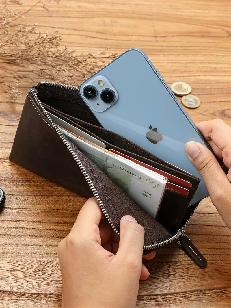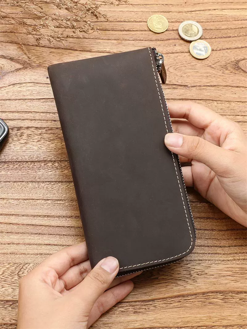 | nameOriginal | Men's retro Crazy Horse first-layer cowhide long wallet large-capacity genuine leather zipper wallet simple multi-card slot wallet |