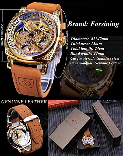 | nameOriginal | FORSINING Square Luxury Retro Mechanical Watch for Men, Gorgeous Hollow Skeleton Self-Wind Carved Automatic Watches Vintage Leather Strap Wristwatch Silver Dail Black Strap |