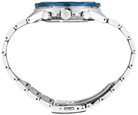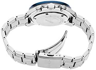 Introducing the must-have item for men – the Quartz Chronograph. This timepiece boasts a chronograph that can measure up to 60 minutes of elapsed time in 1/5-second increments, making it perfect for those who value precision. The tachymeter bezel with Blue ion-finish adds a touch of sophistication to the watch, while the blue multi-layered dial with orange accents adds a pop of color.