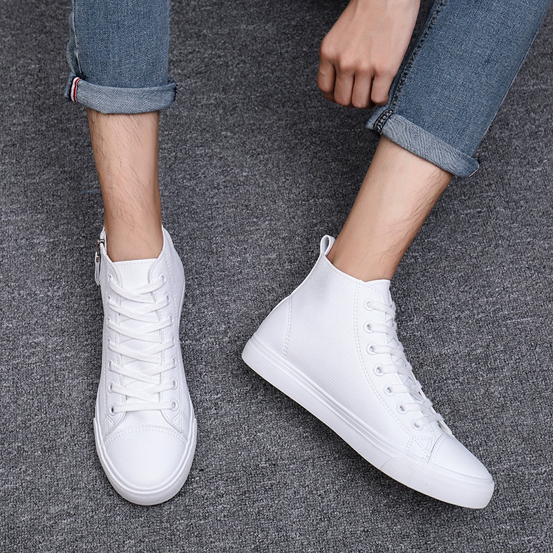 Men's shoes, spring and autumn high-top shoes, Martin boots, leather shoes, versatile mid-top sneakers, waterproof casual shoes, breathable single shoes, fashionable