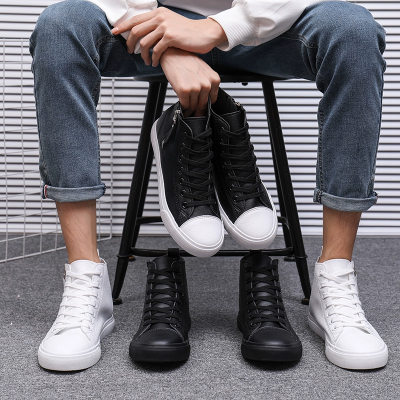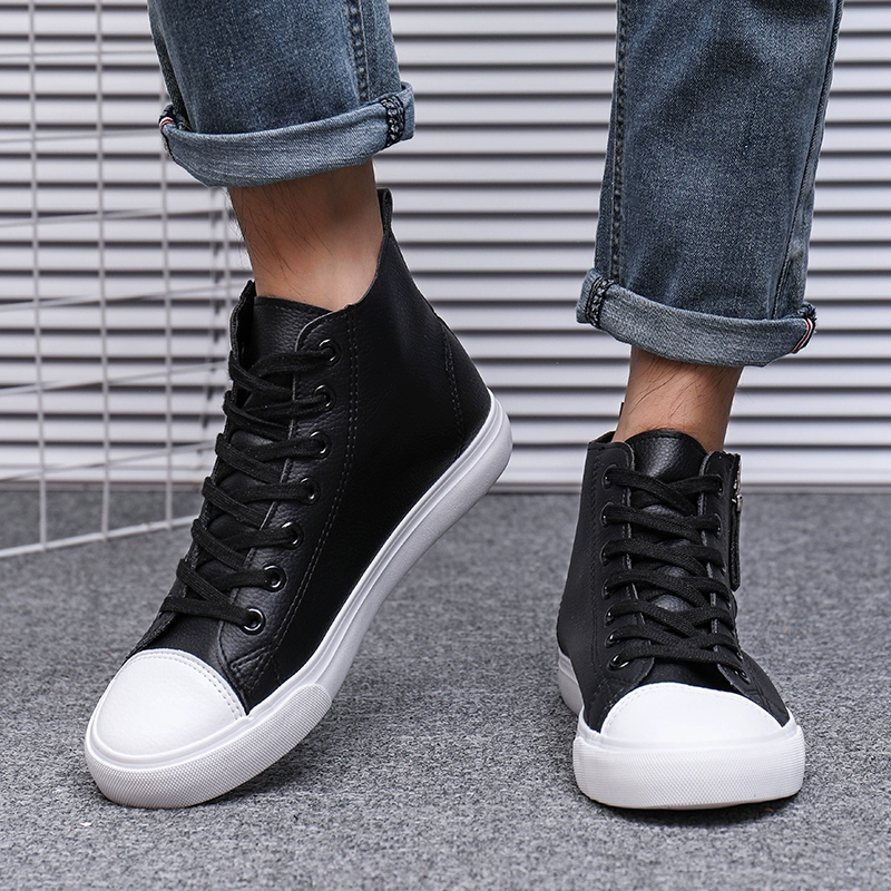 Men’s shoes, spring and autumn high-top shoes, Martin boots, leather shoes, versatile mid-top sneakers, waterproof casual shoes, breathable single shoes, fashionable shoes