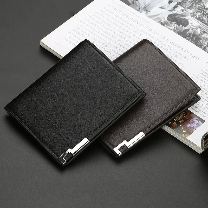 Men's short iron edge wallet Korean version ultra-thin young men's wallet trendy horizontal card holder Japanese and Korean casual wallet