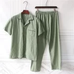 Men’s short -sleeved long -sleeved long lattice full cotton pajamas