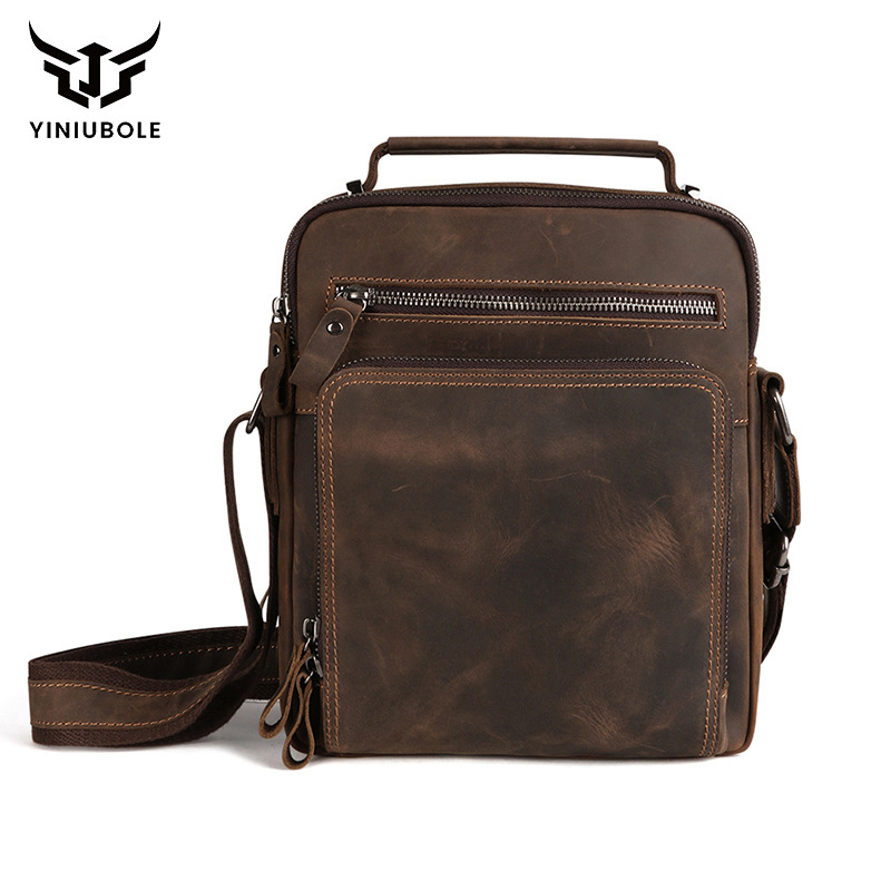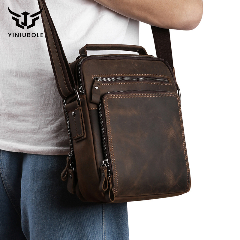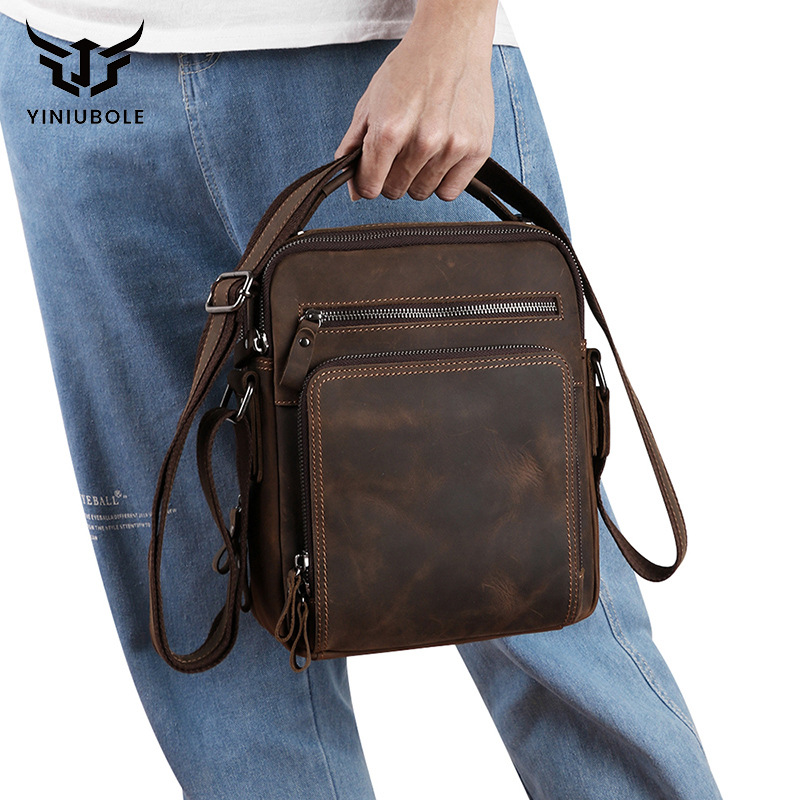 Men's shoulder bag vintage genuine leather men's messenger bag large capacity Men's messenger bag Crazy Horse leather casual men's bag