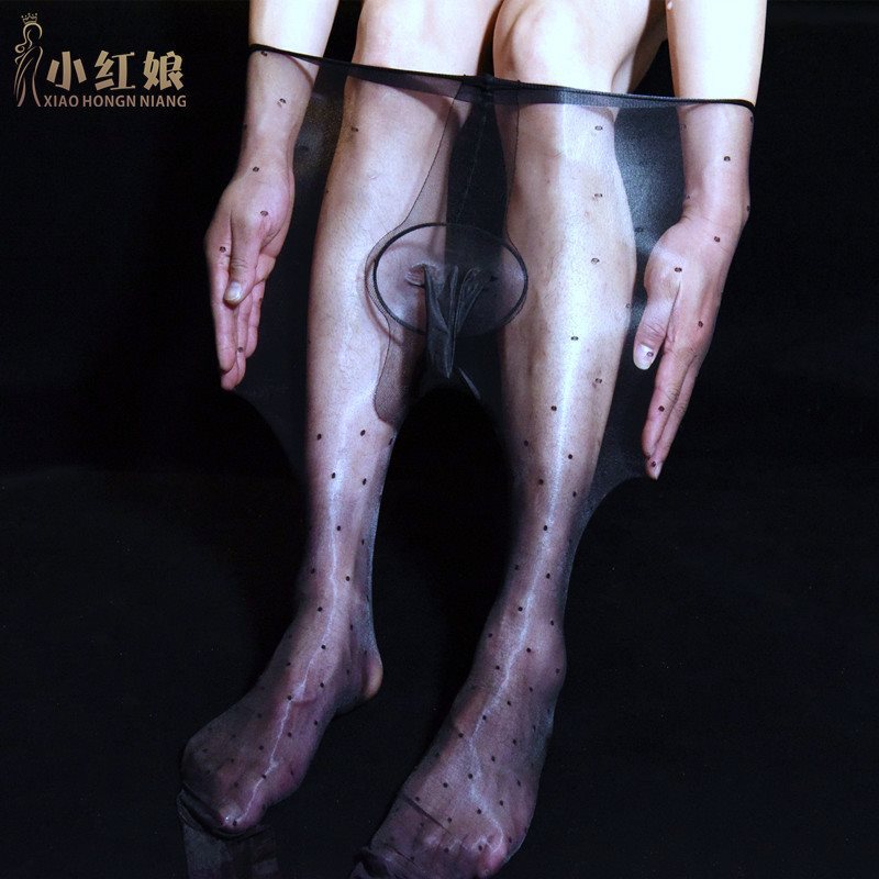 Men's Silk Slippery Stockings Sexy Jacquard Oil Bright Stockings with JJ Set Silk Slippery Aircraft Stockings Ultra-thin 1D Aurora Pantyhose