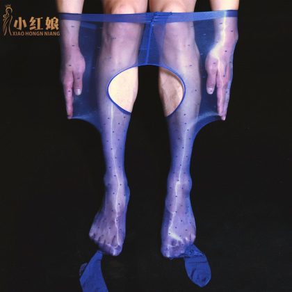 Men’s Silk Slippery Stockings Sexy Jacquard Oil Bright Stockings with JJ Set Silk Slippery Aircraft Stockings Ultra-thin 1D Aurora Pantyhose