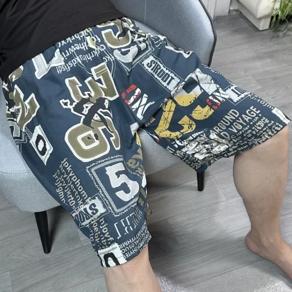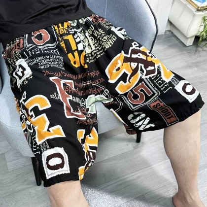 Men’s simple shorts printed letters plus fat plus larger cotton silk
