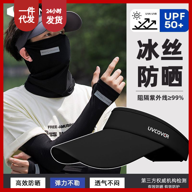 | nameOriginal | Men's Special Sun Hat Summer Ice Sleeve Mask Showing Face Small UV Protection Big Hat Brim Outdoor Sun Protection Three-piece Set |