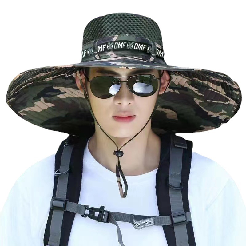 Men's summer new outdoor big brim fisherman hat sun protection mountaineering hat fishing sun cover 15cm hat