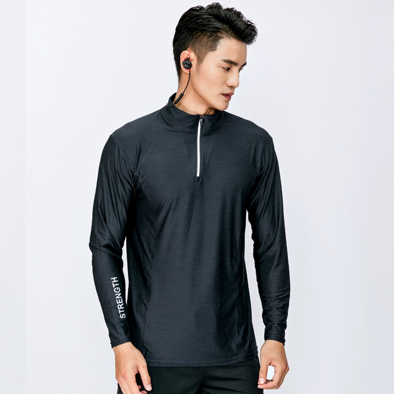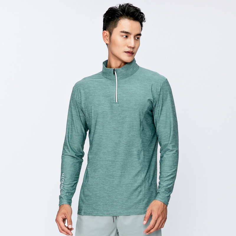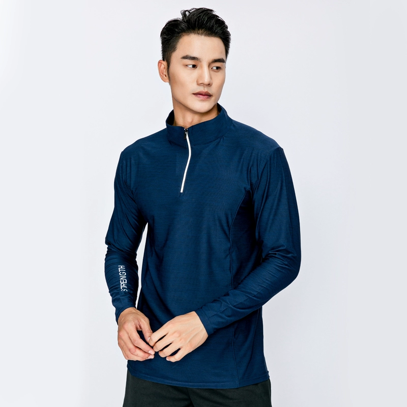 Men’s sweat-absorbent half-zip stand-collar long-sleeved sports top