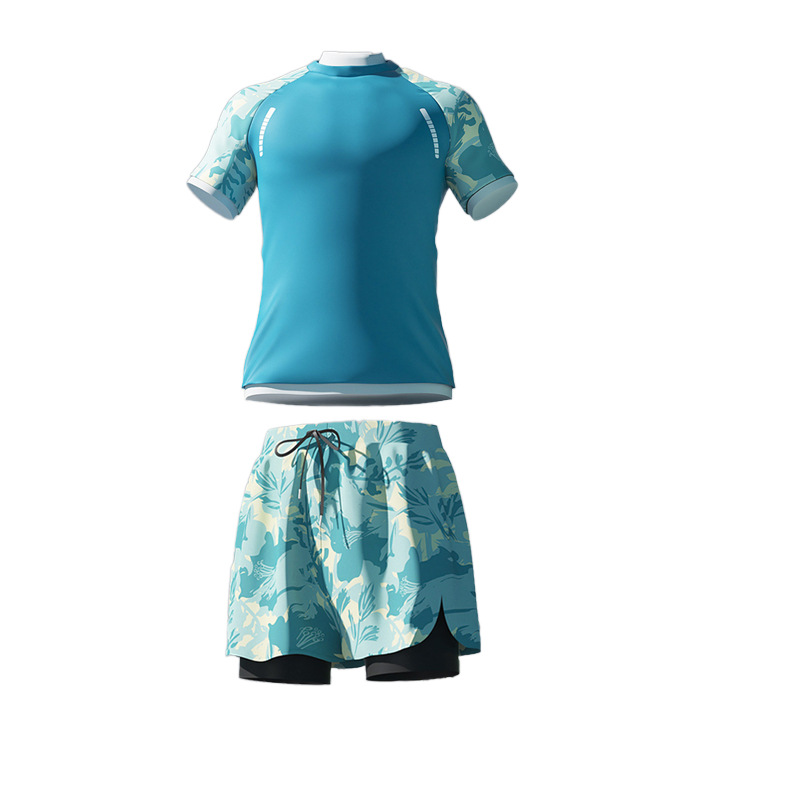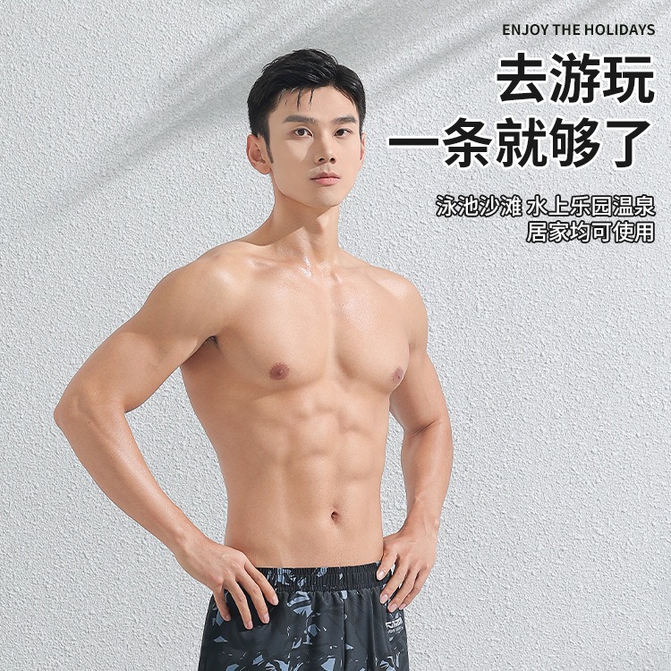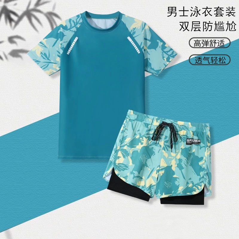 Men's swimming trunks fake two-piece printed fashionable comfortable breathable plus size conservative anti-embarrassment swimming pool vacation hot spring swimsuit