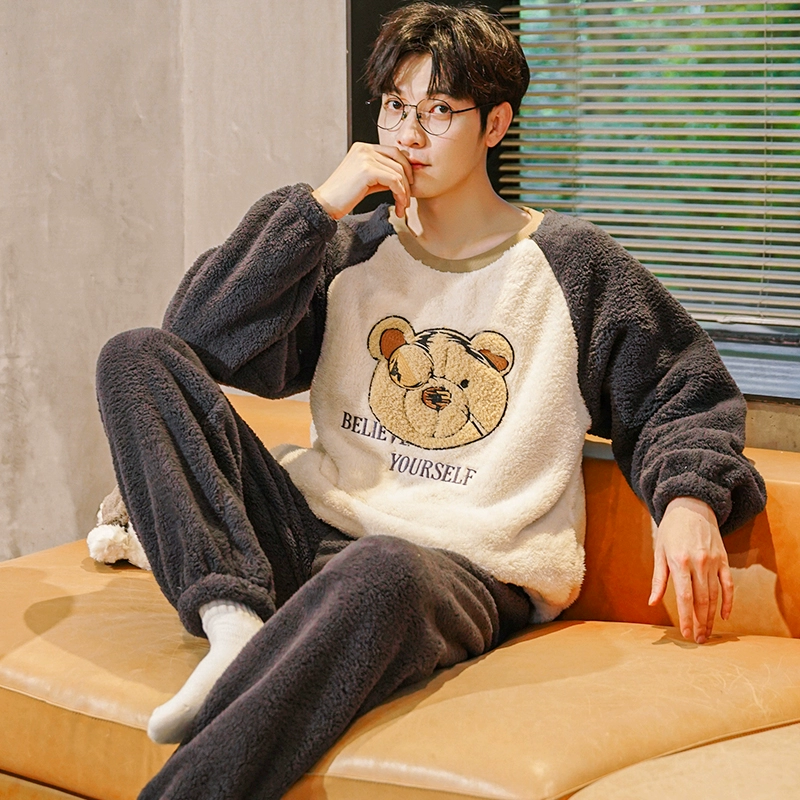 Men’s thick flannel elegant autumn and winter pajamas