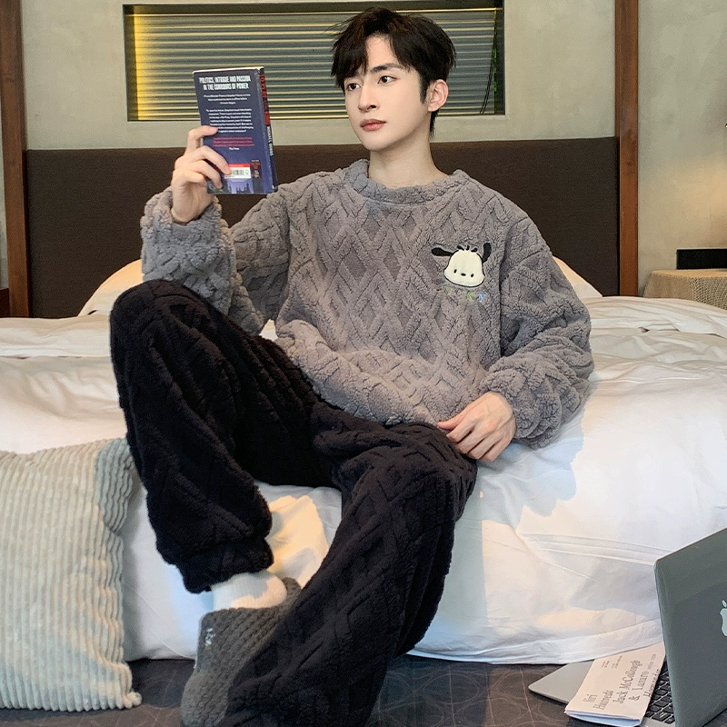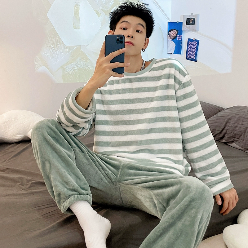 | nameOriginal | Men's thickened dad's young and middle-aged flannel pajamas |