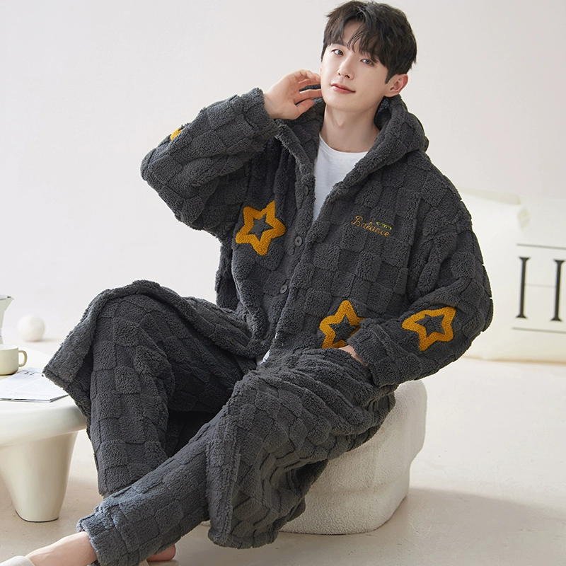 | nameOriginal | Men's thickened flannel long bathrobe refined pajamas |