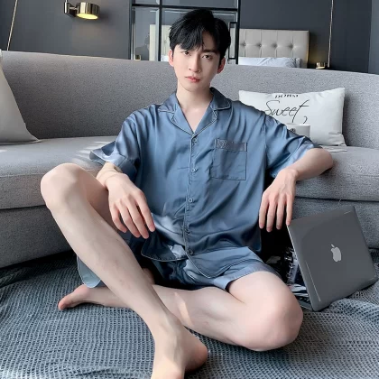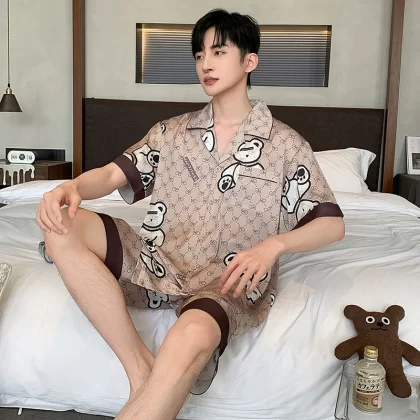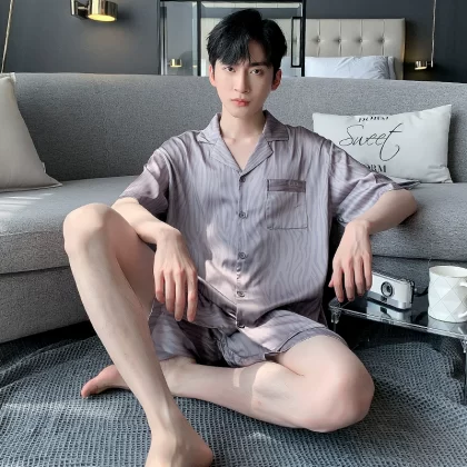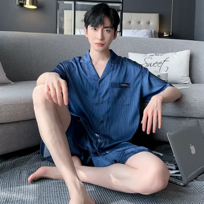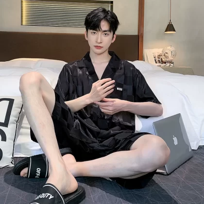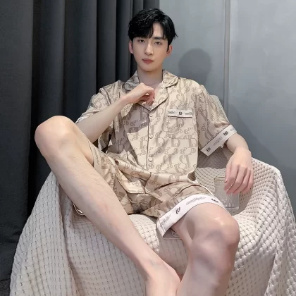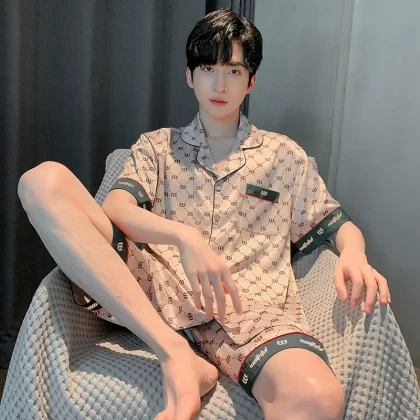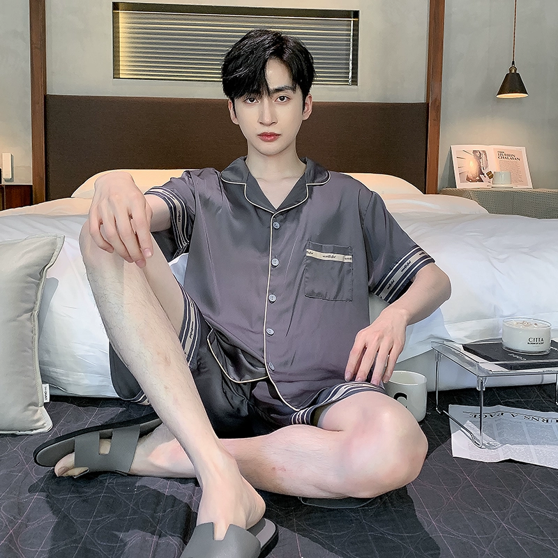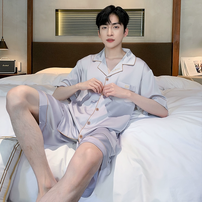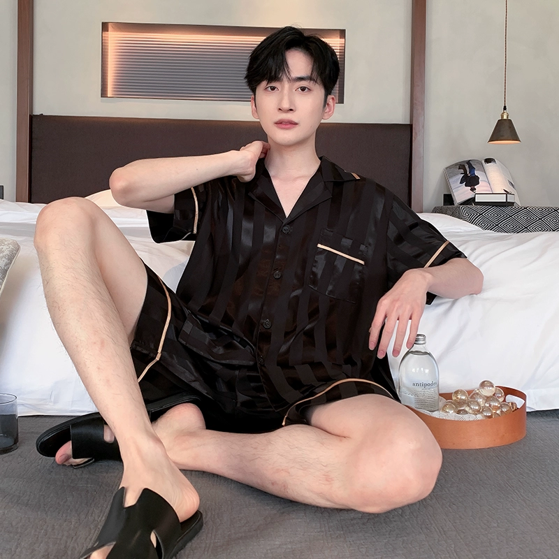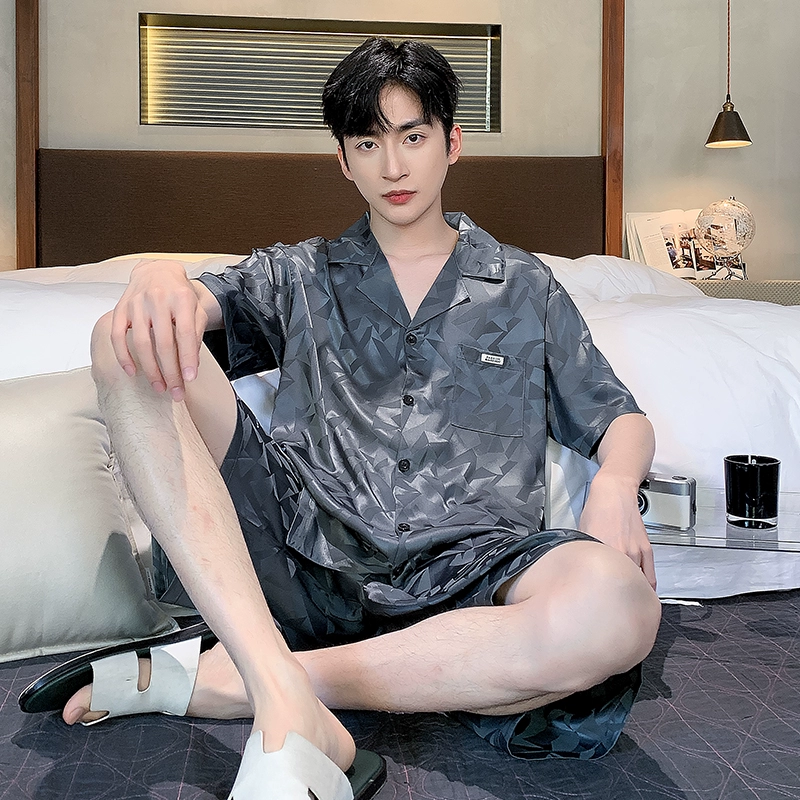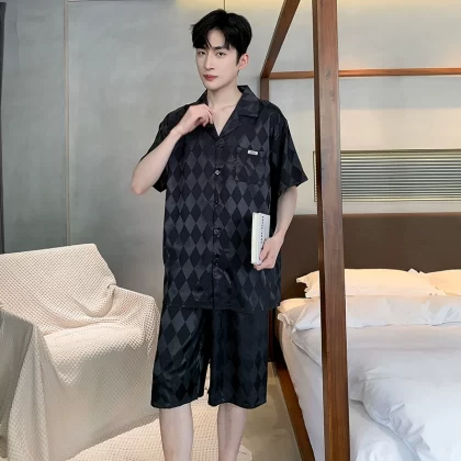 | nameOriginal | Men's Thin Short Sleeve Diamond Luxury Silk Large Size Pajamas |