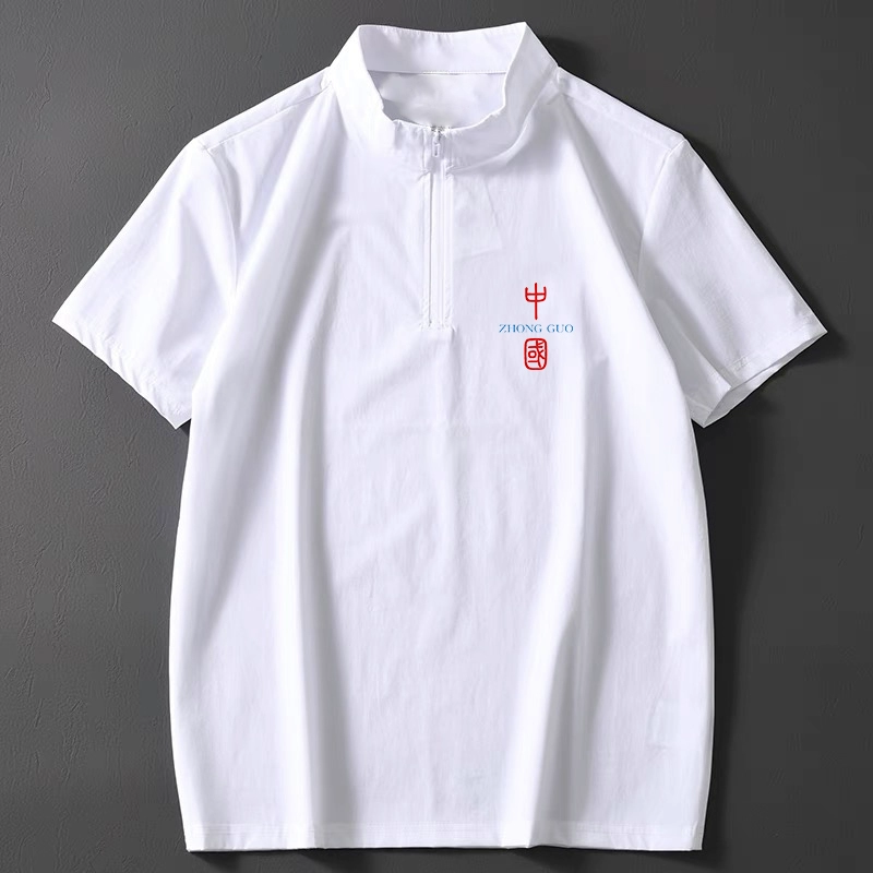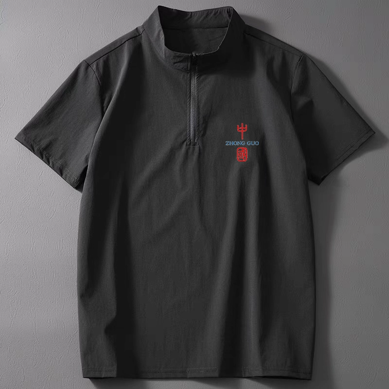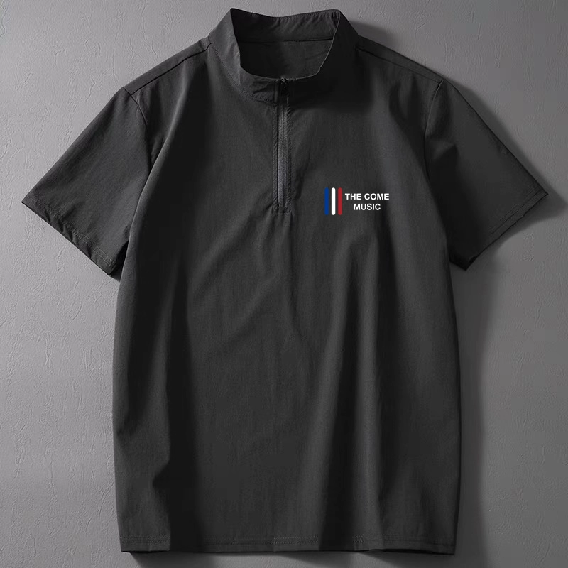 Men’s Thin Solid Color Half-Zip Stand Collar Short Sleeve Outdoor