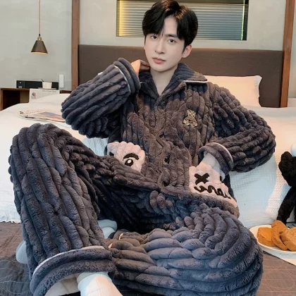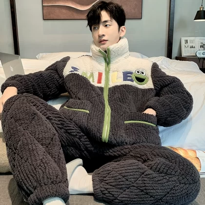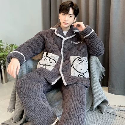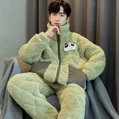 Men’s three -layer cotton padded and velvet teenager zipper pajama