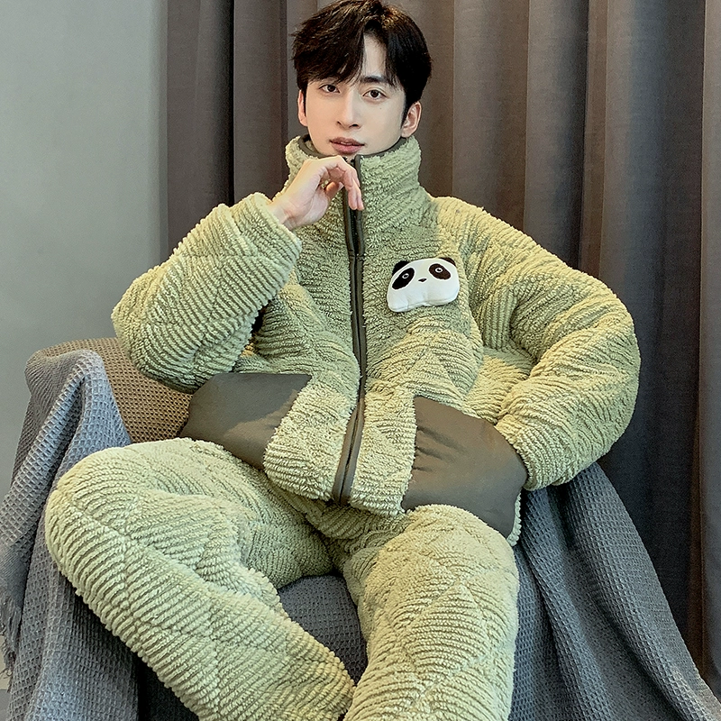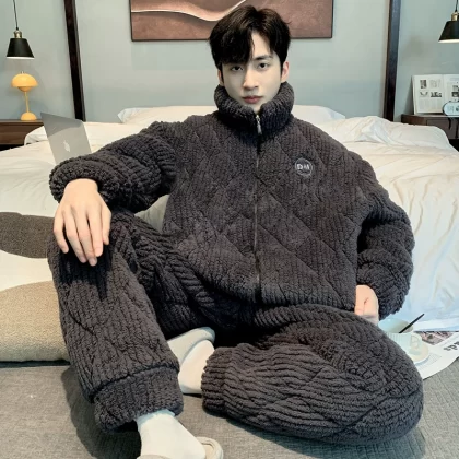 Men's three-layer quilted plus fleece youth zipper pajamas