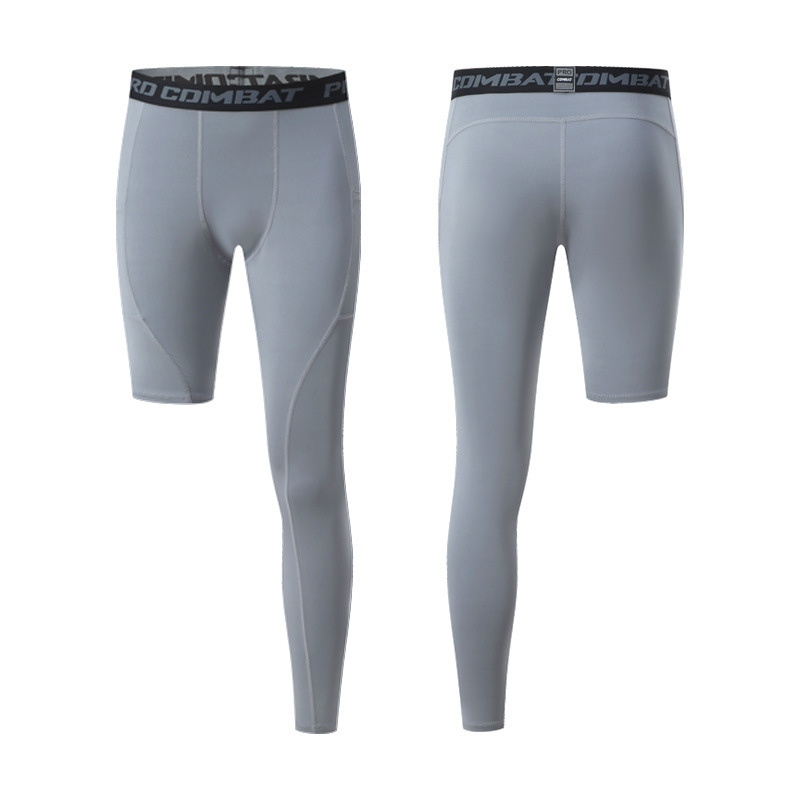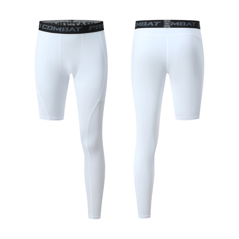 Men's Tight One Leg Fitness Trousers Long Short Legs Basketball Training Leggings Quick-drying Double Pocket Trousers